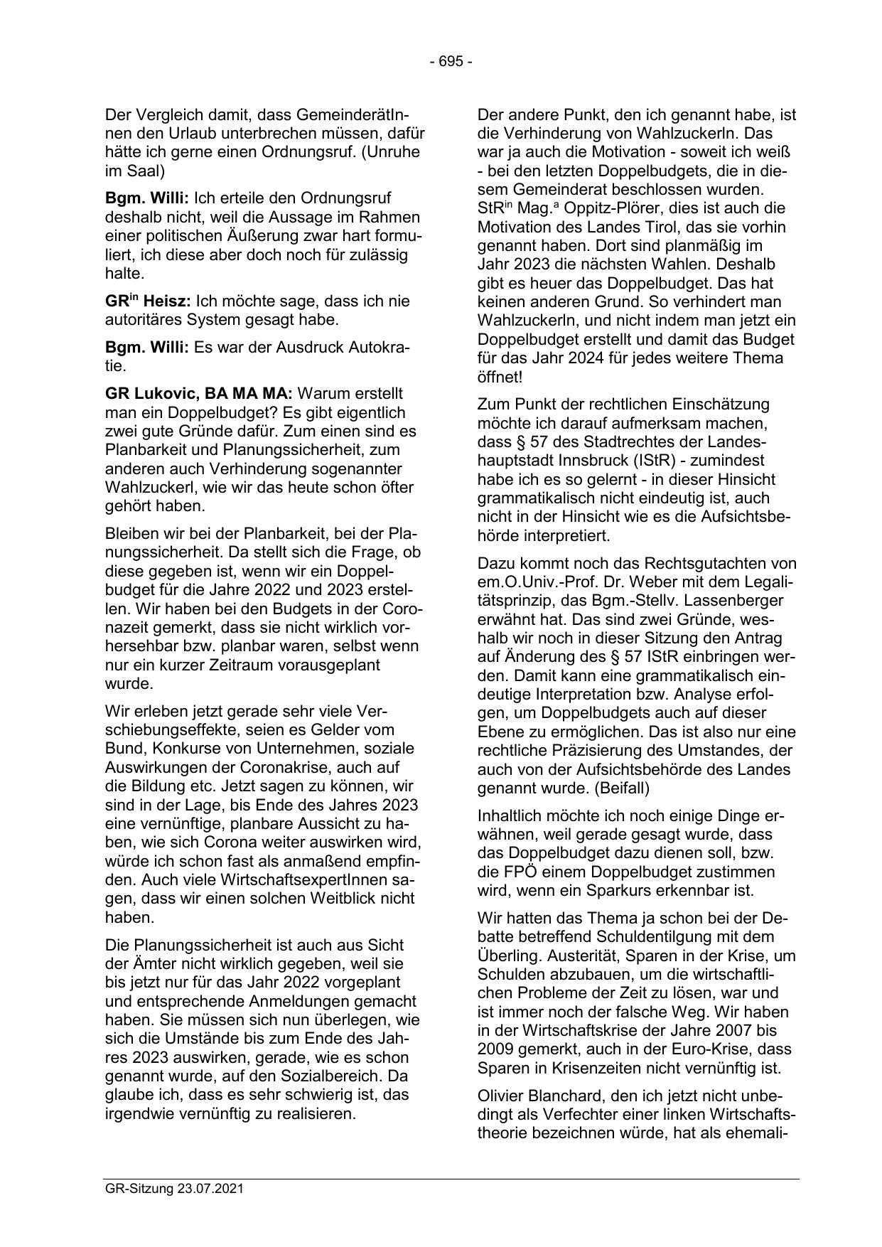 Bgm. Willi: Ich erteile den Ordnungsruf