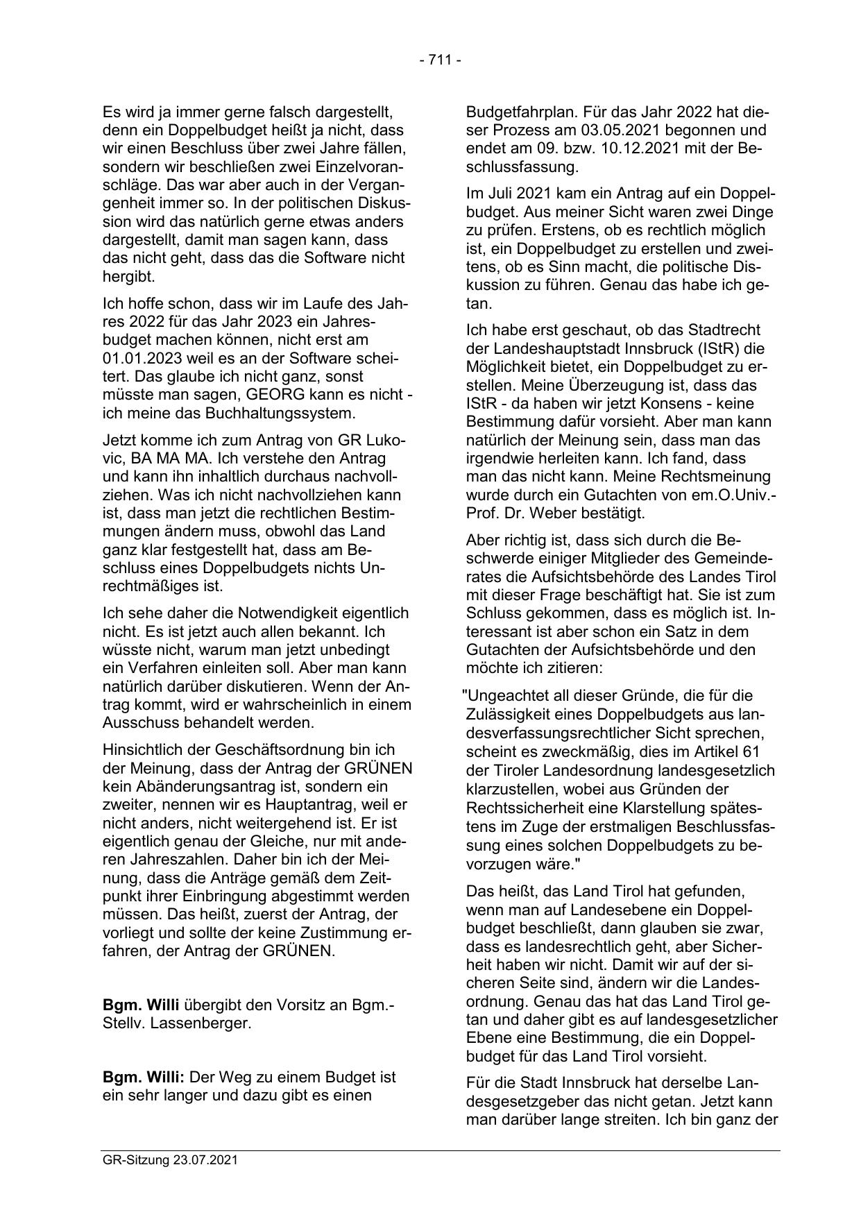 ganz klar festgestellt hat, dass am Beschluss eines Doppelbudgets nichts Unrechtmäßiges ist.