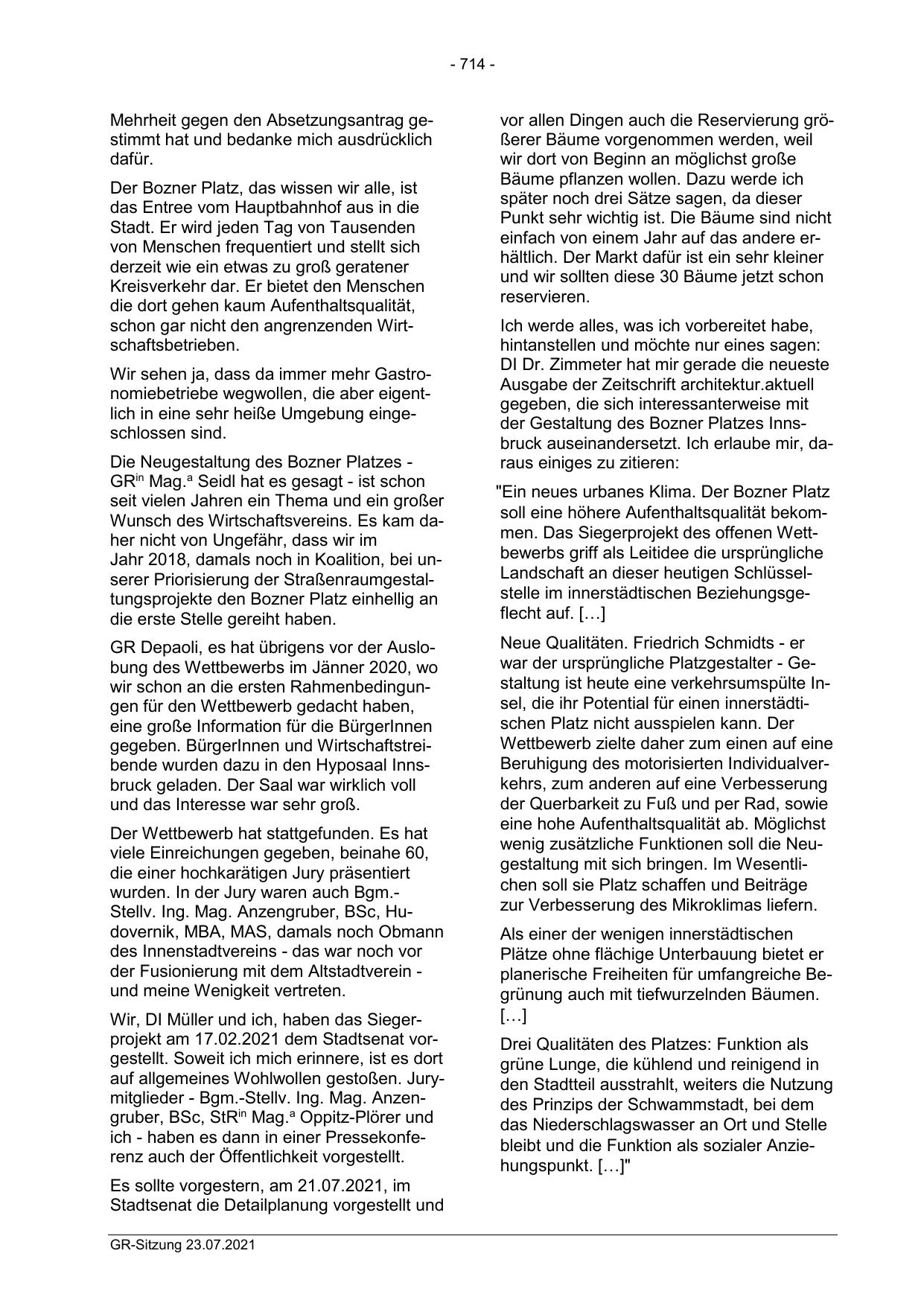 der Gestaltung des Bozner Platzes Innsbruck auseinandersetzt. Ich erlaube mir, daraus einiges zu zitieren: