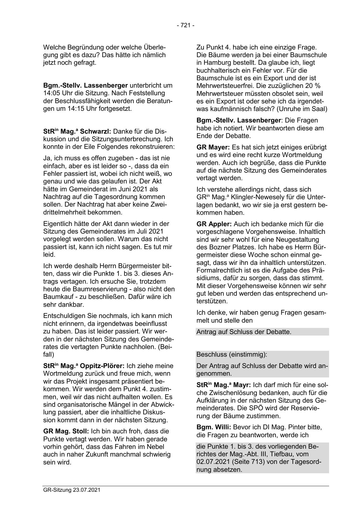 zu haben. Das ist leider passiert. Wir werden in der nächsten Sitzung des Gemeinderates die vertagten Punkte nachholen. (Beifall)