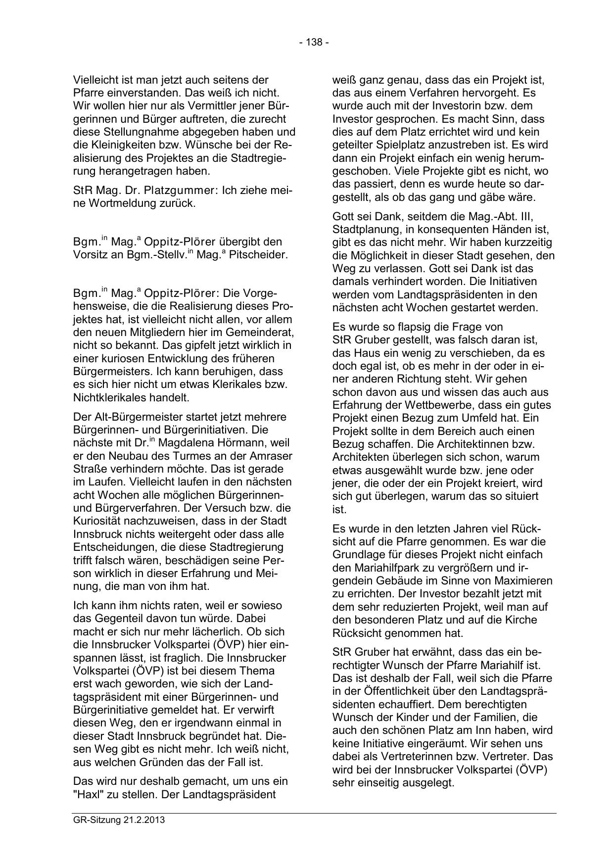 StR Gruber hat erwähnt, dass das ein berechtigter Wunsch der Pfarre Mariahilf ist.
