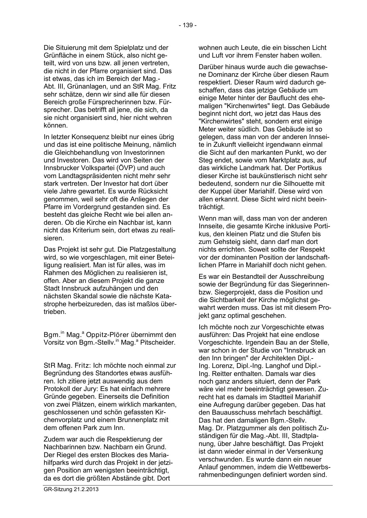 Mag. Dr. Platzgummer als den politisch Zuständigen für die Mag.-Abt. III, Stadtplanung, über Jahre beschäftigt. Das Projekt