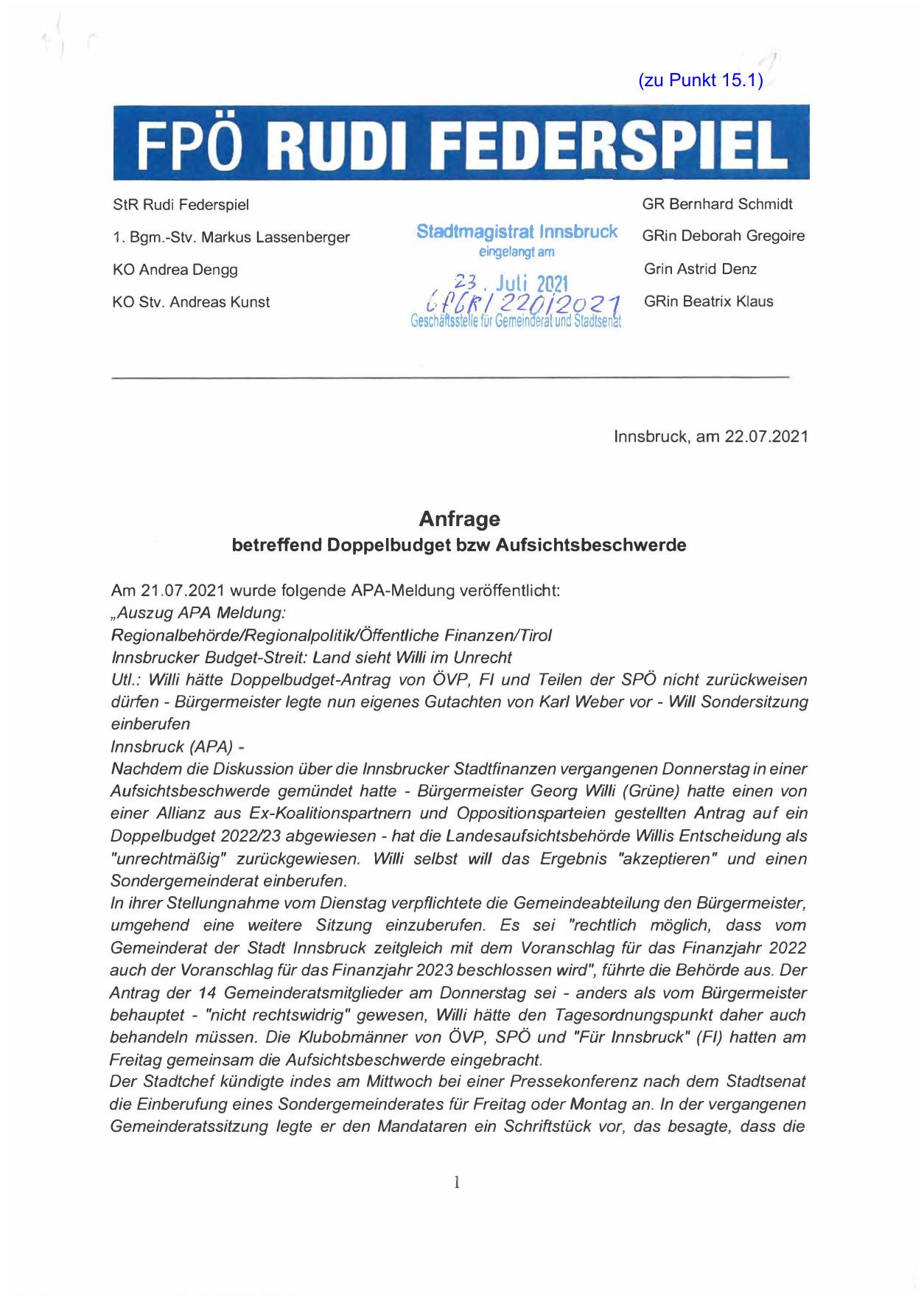 Freitag gemeinsam die Aufsichtsbeschwerde eingebracht.