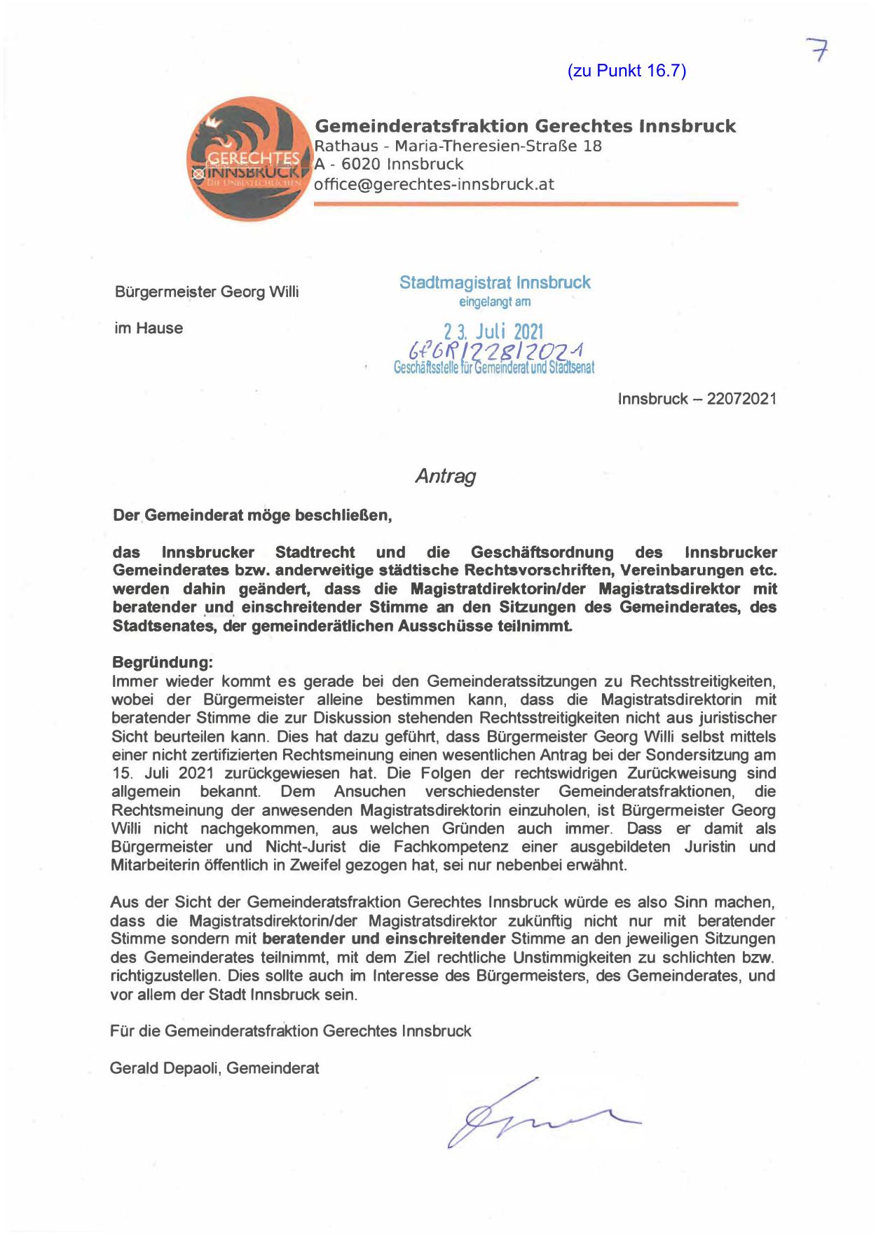 Gem ei nderatsfra ktion Gerec htes I n n s b ruck
