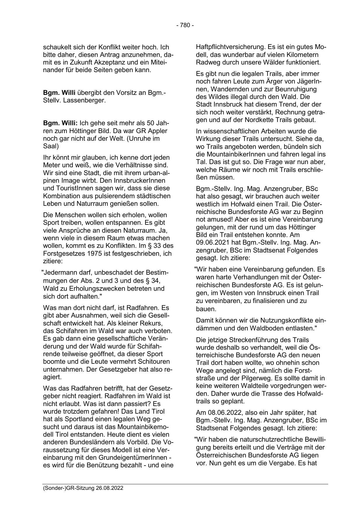 Stadtsenat Folgendes gesagt. Ich zitiere: