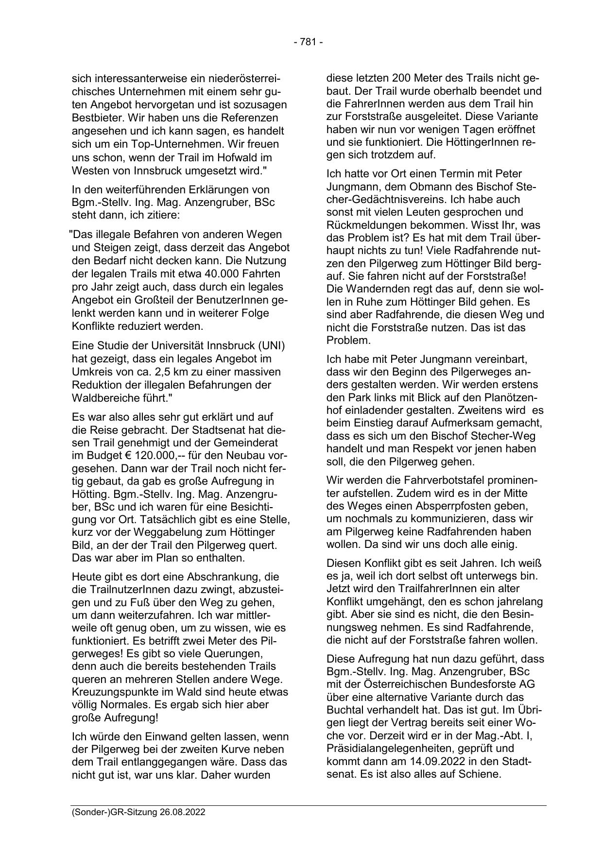 die Reise gebracht. Der Stadtsenat hat diesen Trail genehmigt und der Gemeinderat