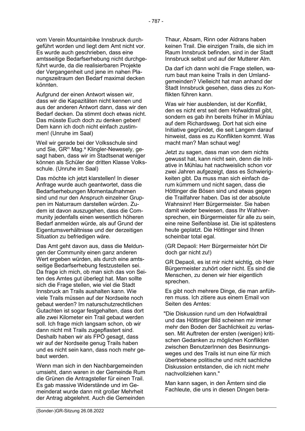Stadt Innsbruck gesehen, dass dies zu Konflikten führen kann.
