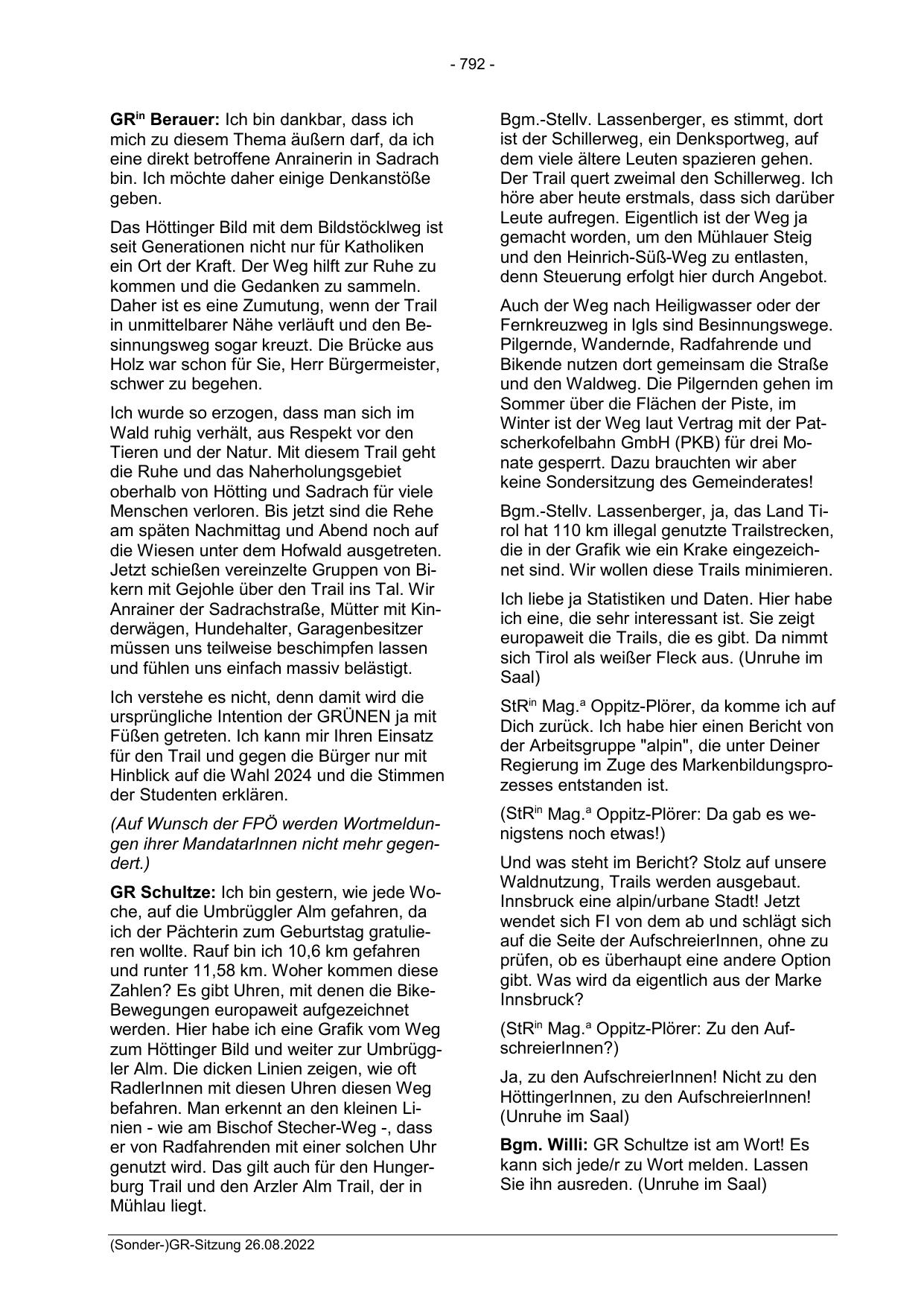 Bgm.-Stellv. Lassenberger, ja, das Land Tirol hat 110 km illegal genutzte Trailstrecken,