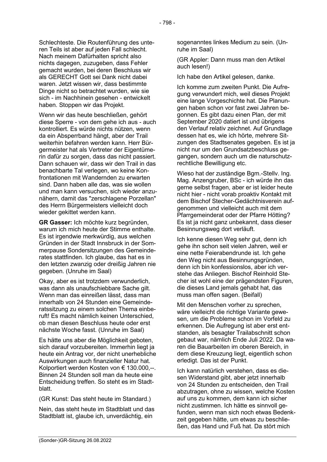Gründen in der Stadt Innsbruck in der Sommerpause Sondersitzungen des Gemeinderates stattfinden. Ich glaube, das hat es in