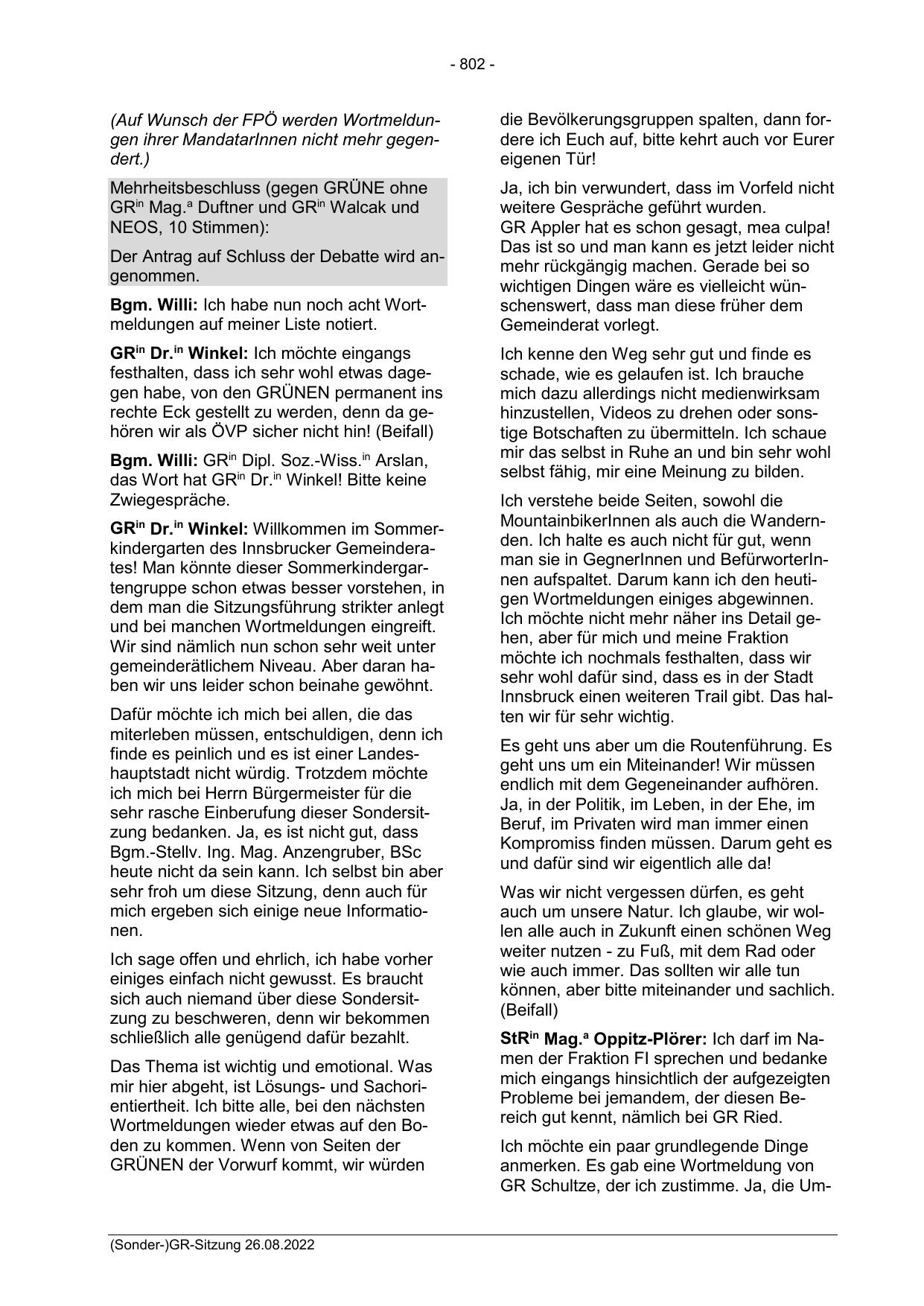 (Auf Wunsch der FPÖ werden Wortmeldungen ihrer MandatarInnen nicht mehr gegendert.)
