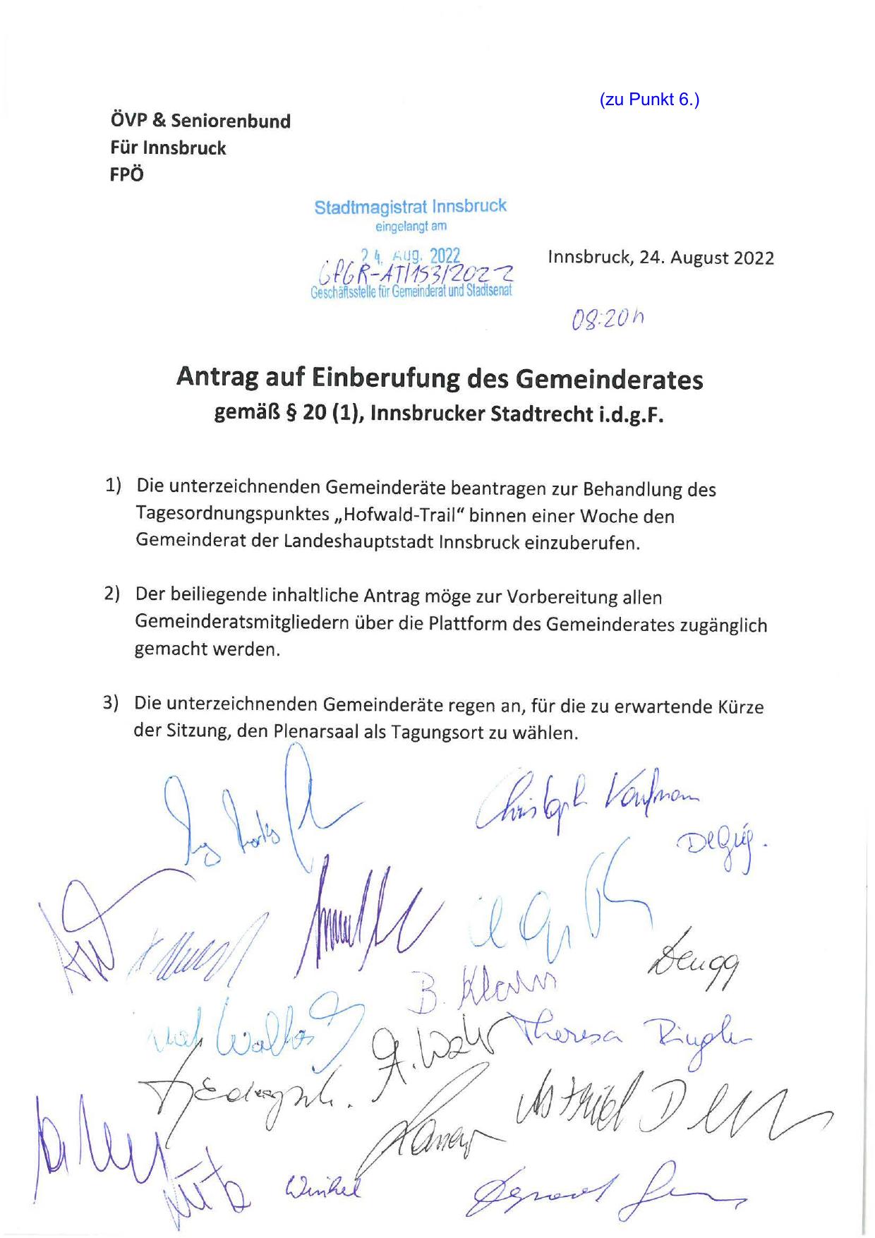 Tagesordnungspunktes „Hofwald-Trail" binnen einer Woche den