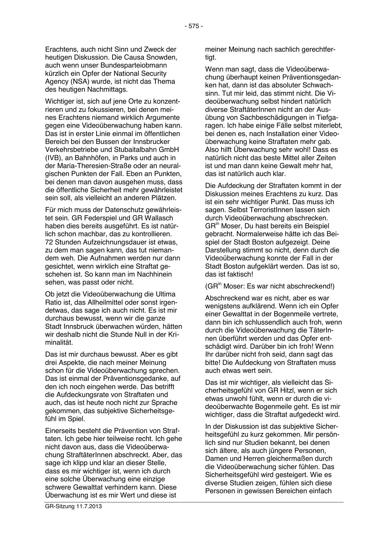 Das ist mir wichtiger, als vielleicht das Sicherheitsgefühl von GR Hitzl, wenn er sich