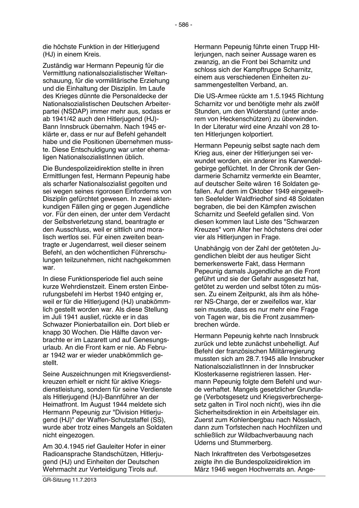 ab 1941/42 auch den Hitlerjugend (HJ)Bann Innsbruck übernahm. Nach 1945 erklärte er, dass er nur auf Befehl gehandelt