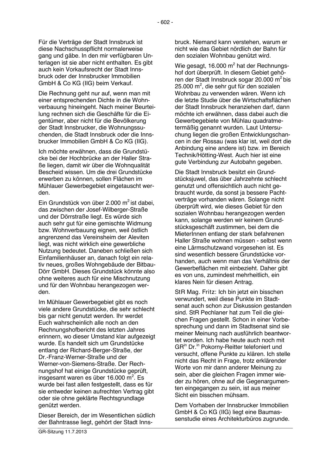 Wie gesagt, 16.000 m2 hat der Rechnungshof dort überprüft. In diesem Gebiet gehören der Stadt Innsbruck sogar 20.000 m2 bis