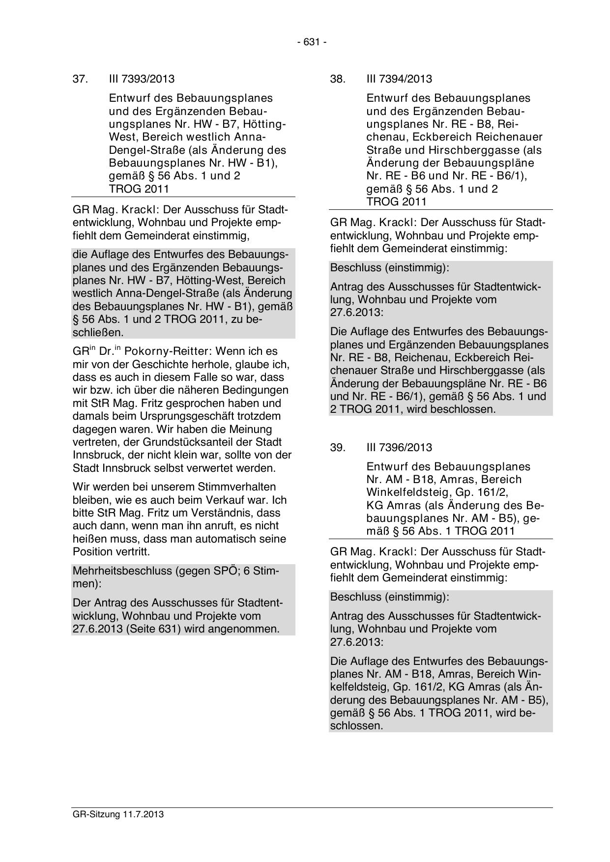 gemäß § 56 Abs. 1 TROG 2011, wird beschlossen.