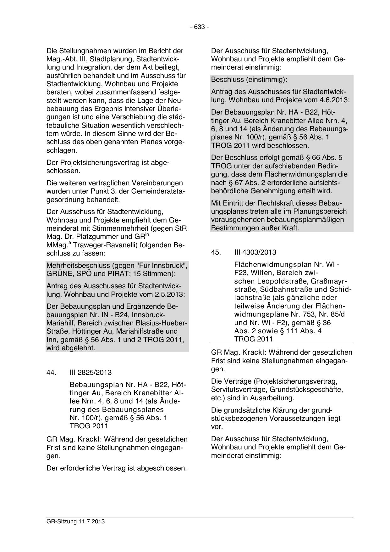 Mehrheitsbeschluss (gegen "Für Innsbruck",