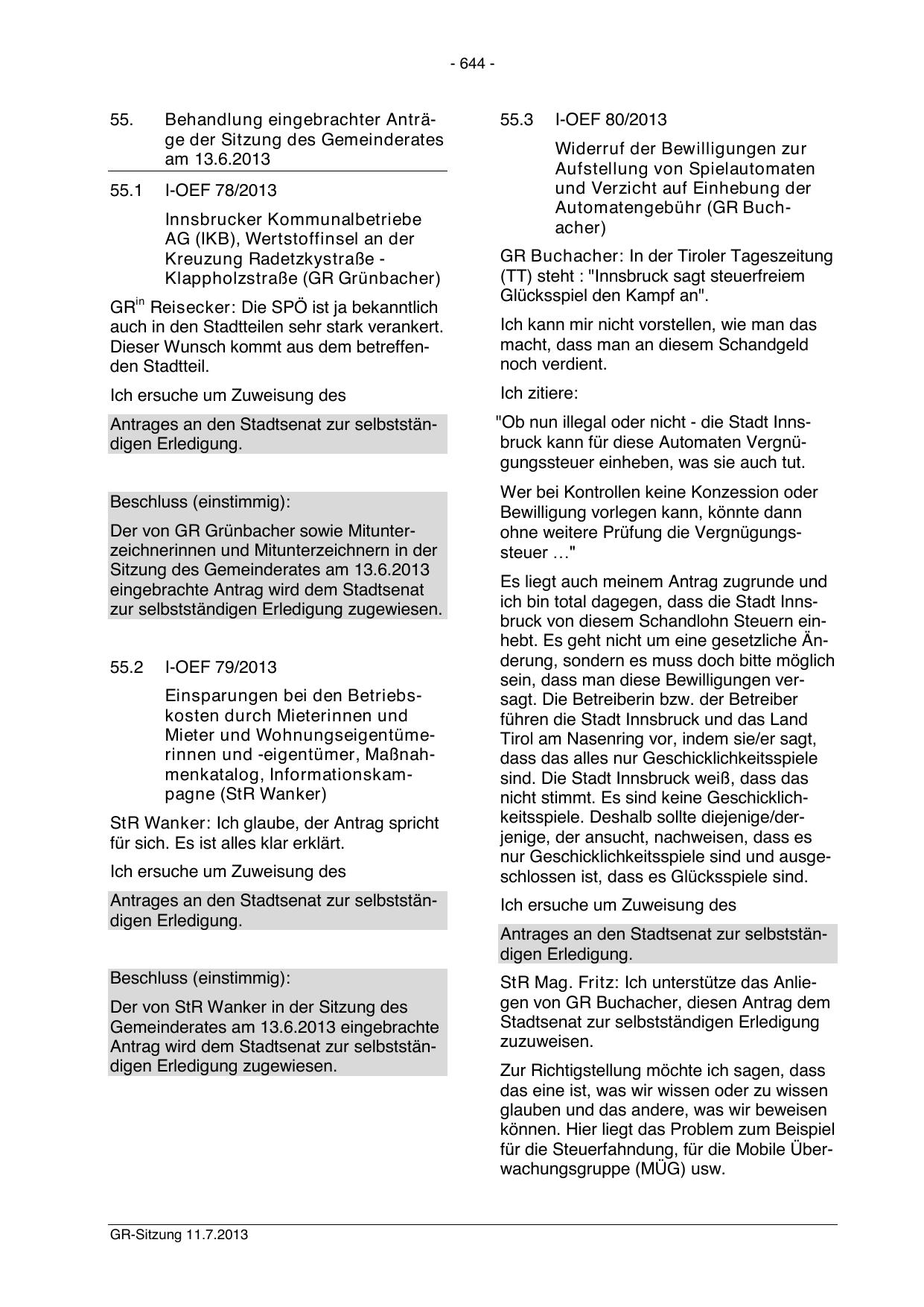ich bin total dagegen, dass die Stadt Innsbruck von diesem Schandlohn Steuern einhebt. Es geht nicht um eine gesetzliche Änderung, sondern es muss doch bitte möglich