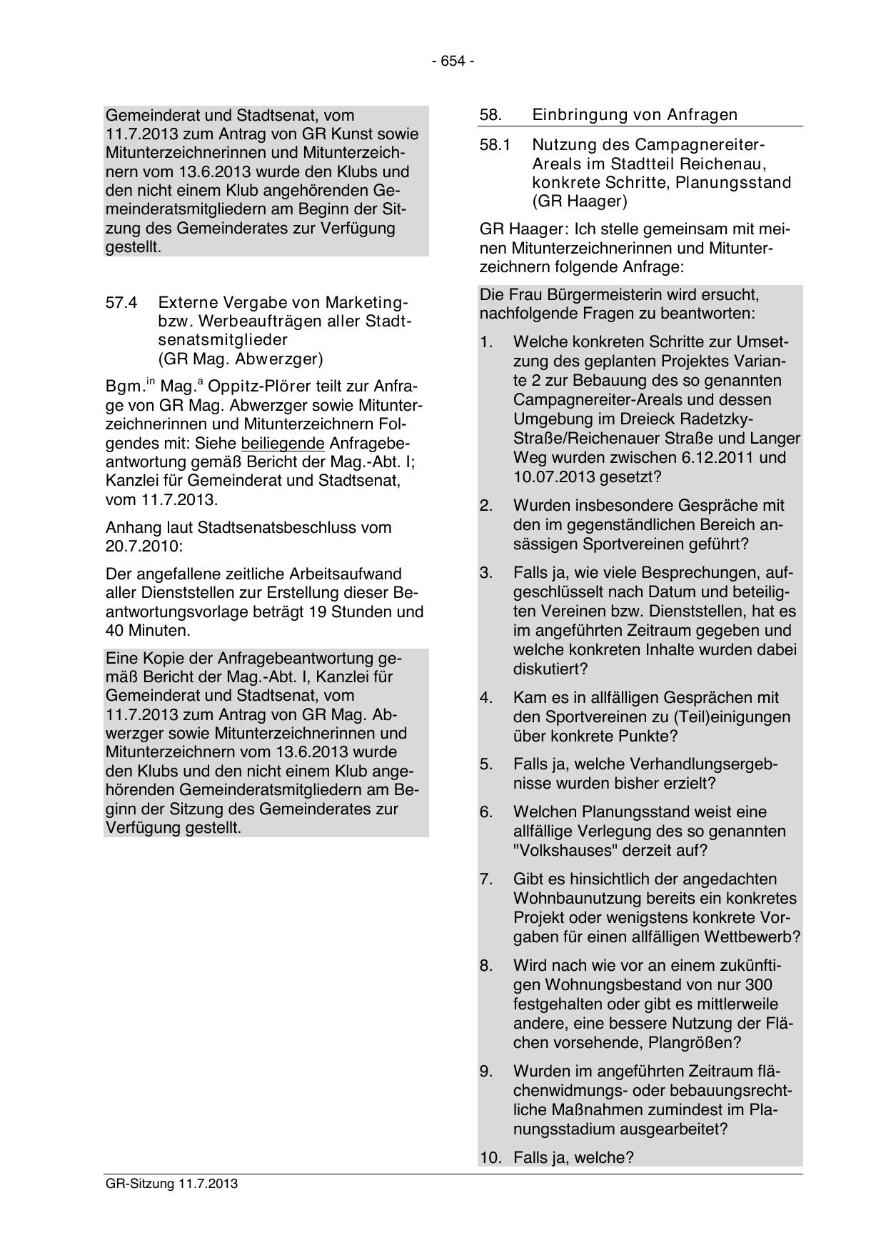11.7.2013 zum Antrag von GR Kunst sowie