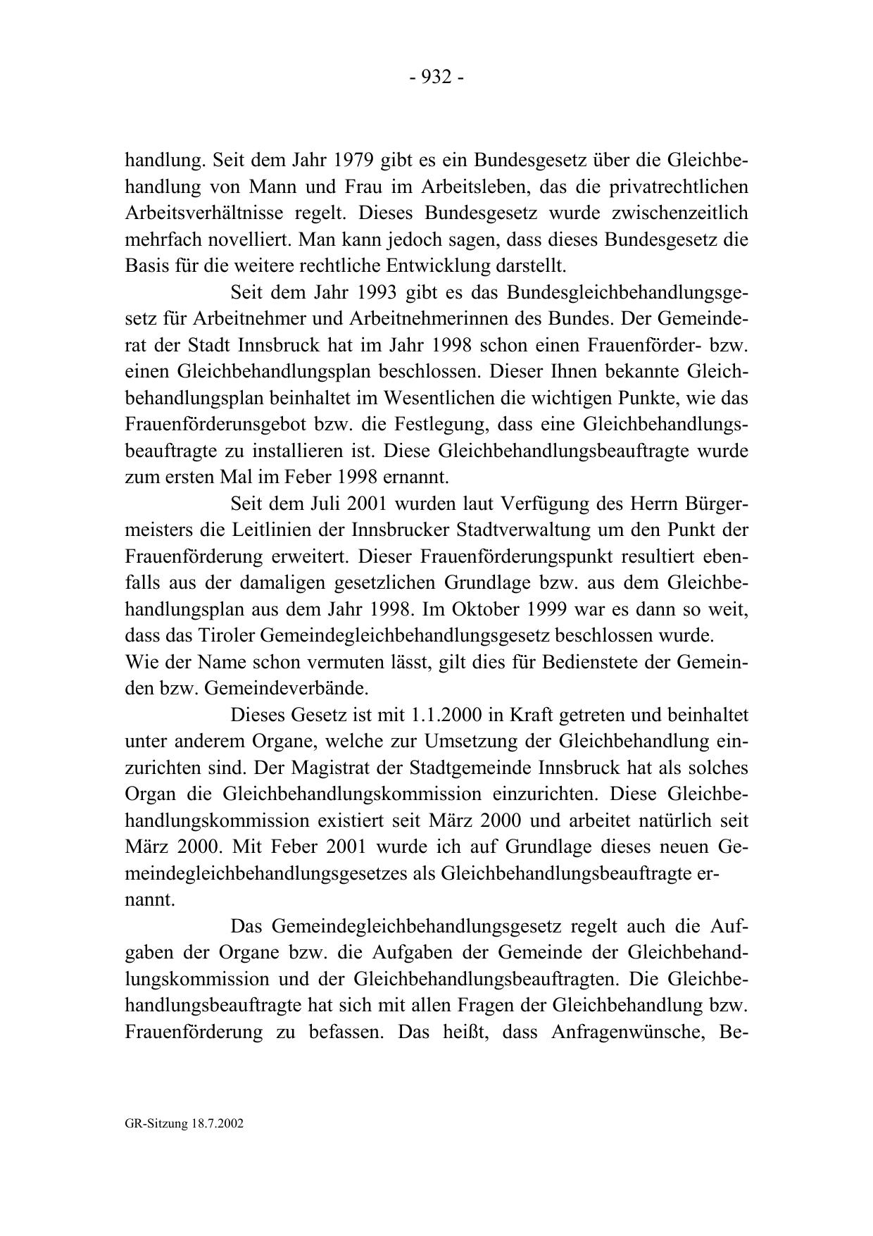 Seit dem Jahr 1993 gibt es das Bundesgleichbehandlungsgesetz für Arbeitnehmer und Arbeitnehmerinnen des Bundes. Der Gemeinderat der Stadt Innsbruck hat im Jahr 1998 schon einen Frauenförder- bzw.