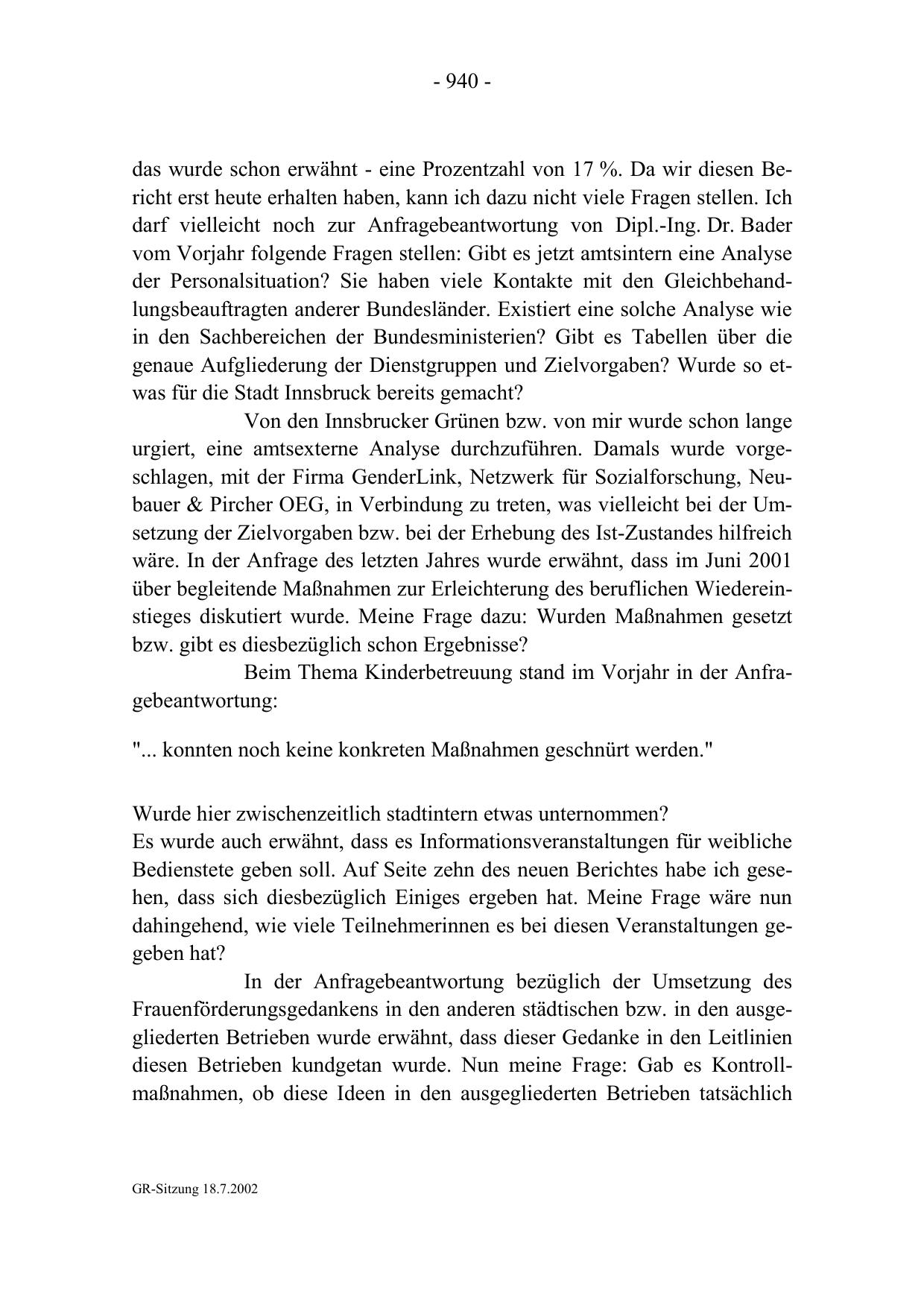 Frauenförderungsgedankens in den anderen städtischen bzw. in den ausgegliederten Betrieben wurde erwähnt, dass dieser Gedanke in den Leitlinien