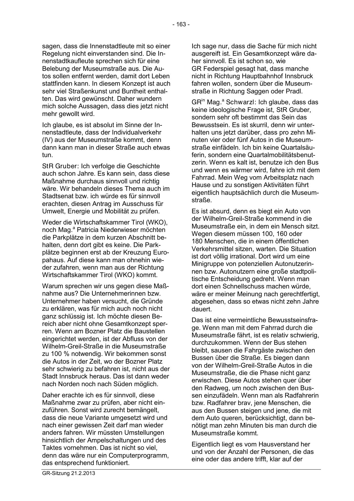 Ich glaube, es ist absolut im Sinne der Innenstadtleute, dass der Individualverkehr
