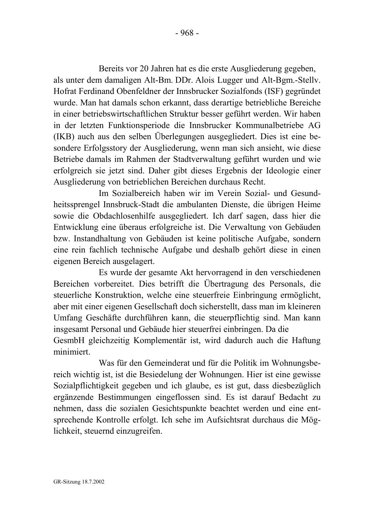 in der letzten Funktionsperiode die Innsbrucker Kommunalbetriebe AG