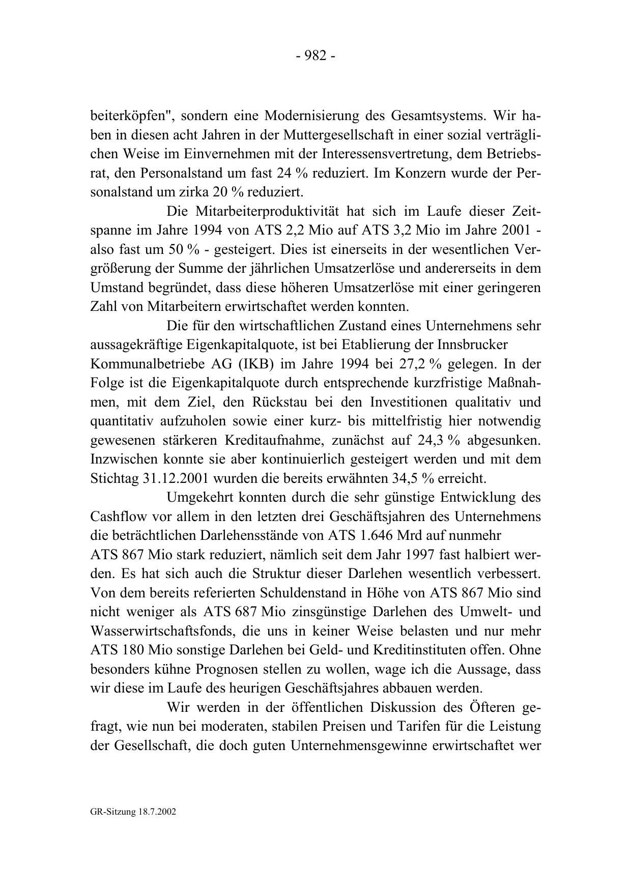 beiterköpfen", sondern eine Modernisierung des Gesamtsystems. Wir haben in diesen acht Jahren in der Muttergesellschaft in einer sozial verträglichen Weise im Einvernehmen mit der Interessensvertretung, dem Betriebsrat, den Personalstand um fast 24 % reduziert. Im Konzern wurde der Personalstand um zirka 20 % reduziert.