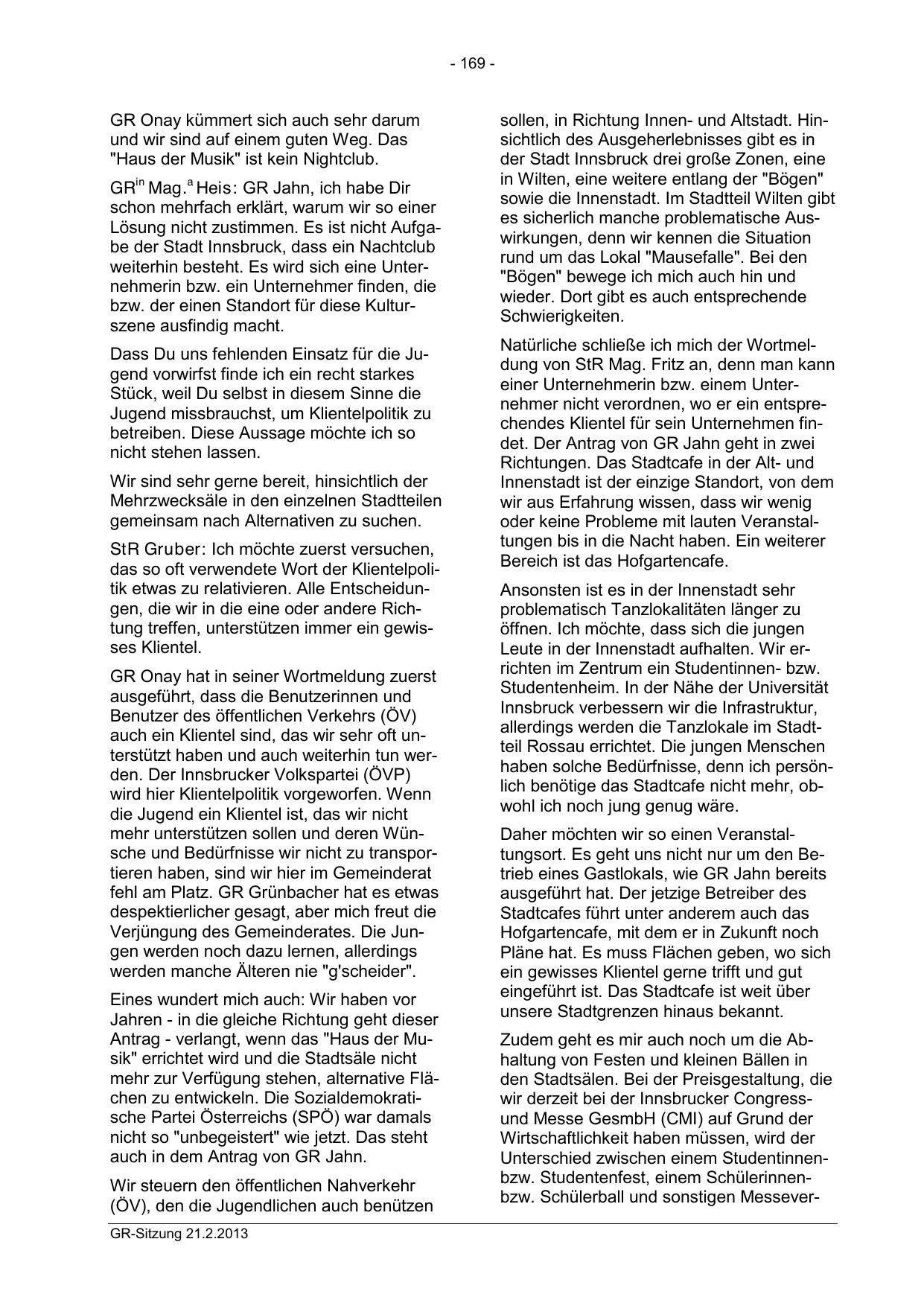 Lösung nicht zustimmen. Es ist nicht Aufgabe der Stadt Innsbruck, dass ein Nachtclub