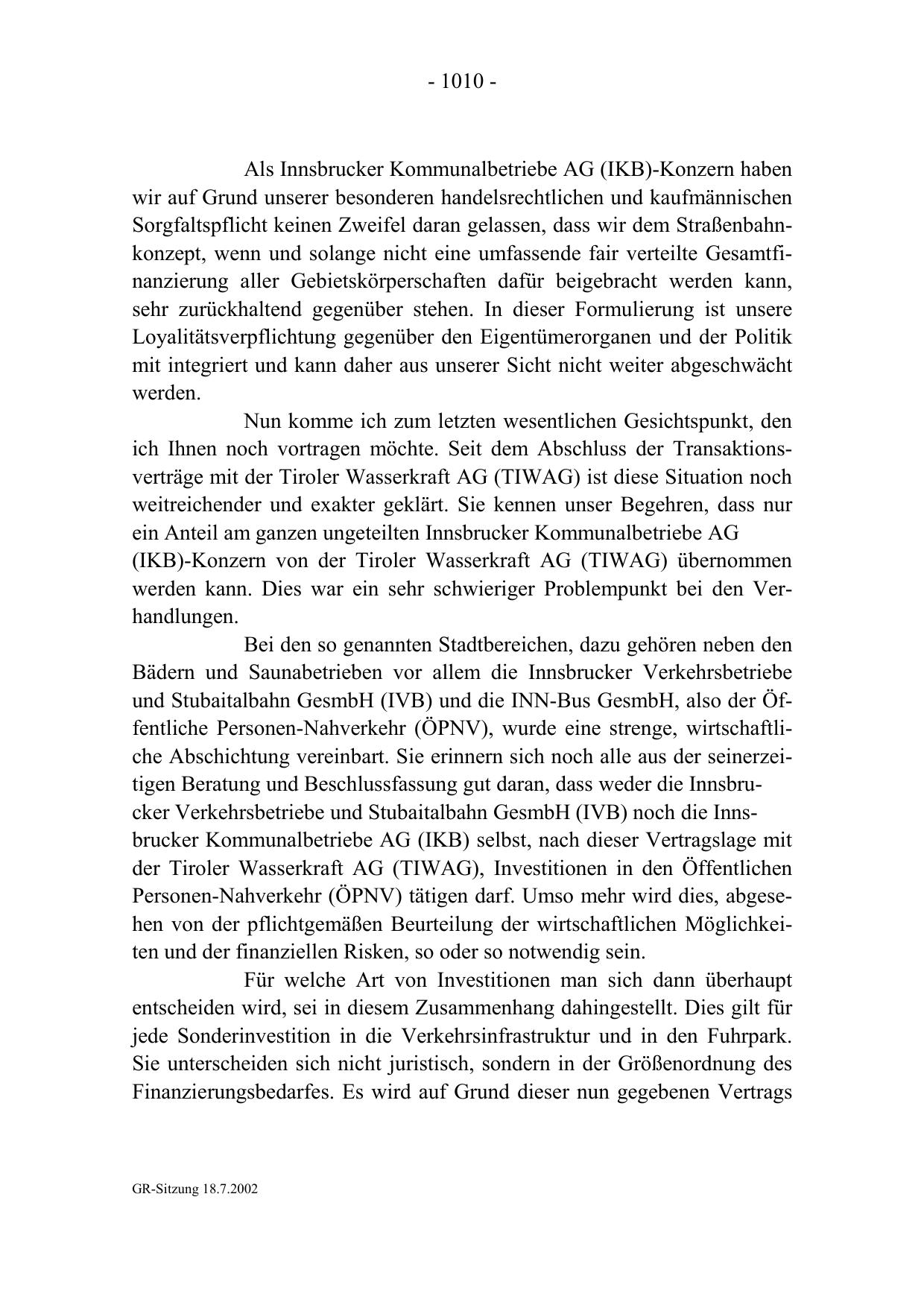 ich Ihnen noch vortragen möchte. Seit dem Abschluss der Transaktionsverträge mit der Tiroler Wasserkraft AG (TIWAG) ist diese Situation noch