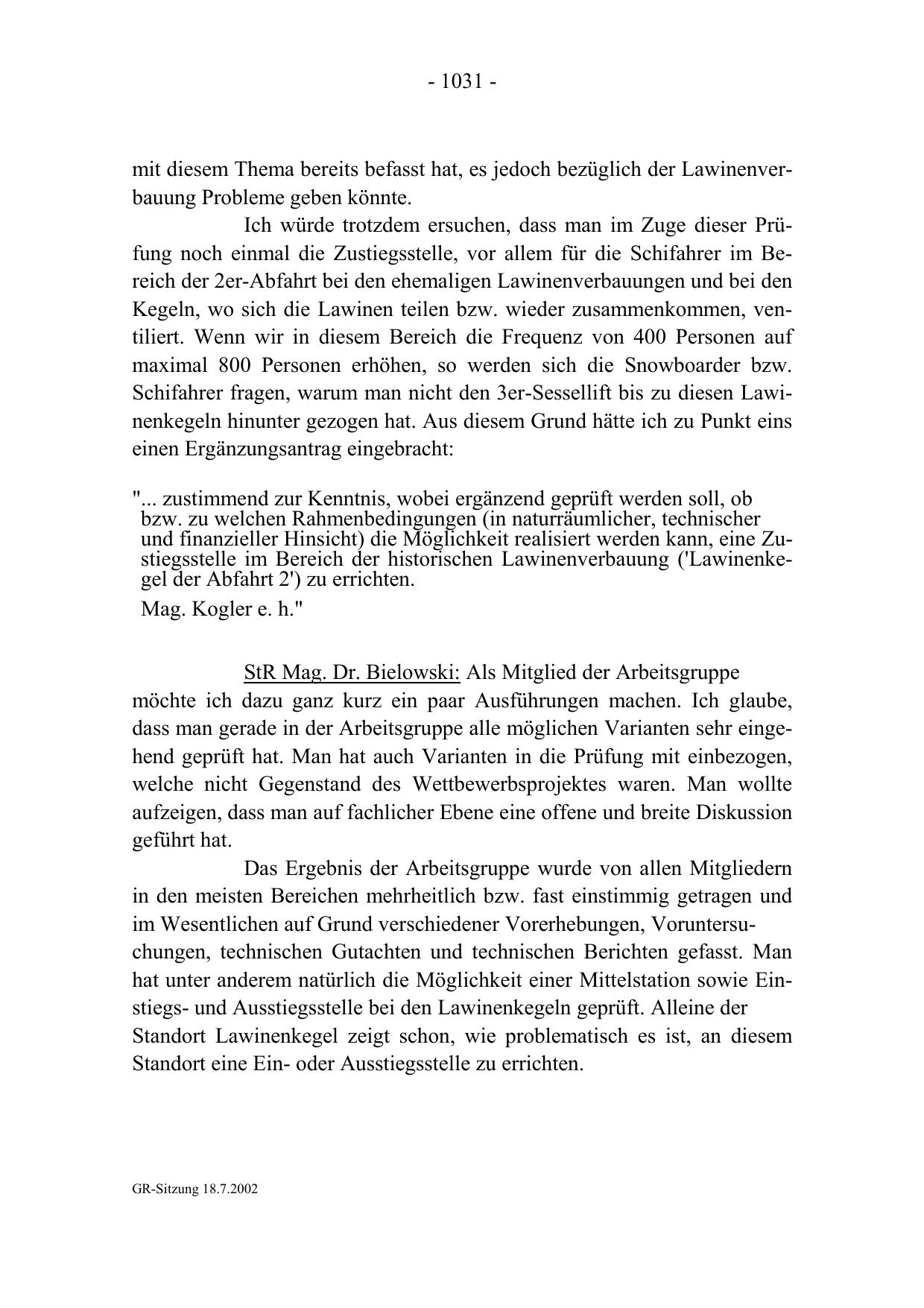 Ich würde trotzdem ersuchen, dass man im Zuge dieser Prüfung noch einmal die Zustiegsstelle, vor allem für die Schifahrer im Bereich der 2er-Abfahrt bei den ehemaligen Lawinenverbauungen und bei den