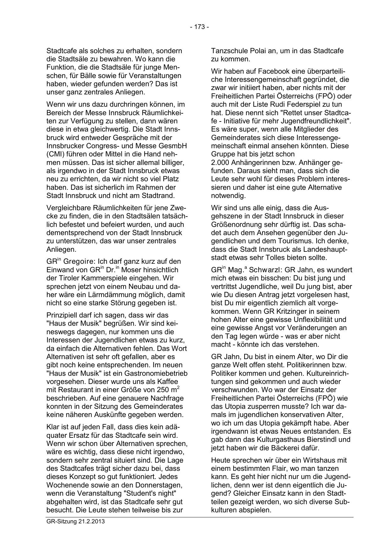 diese in etwa gleichwertig. Die Stadt Innsbruck wird entweder Gespräche mit der