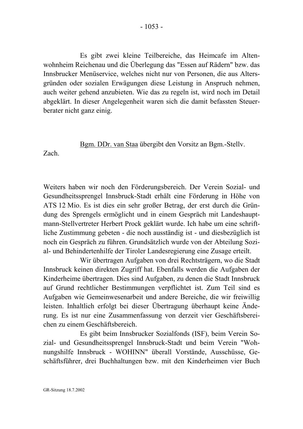 Bgm. DDr. van Staa übergibt den Vorsitz an Bgm.-Stellv.
