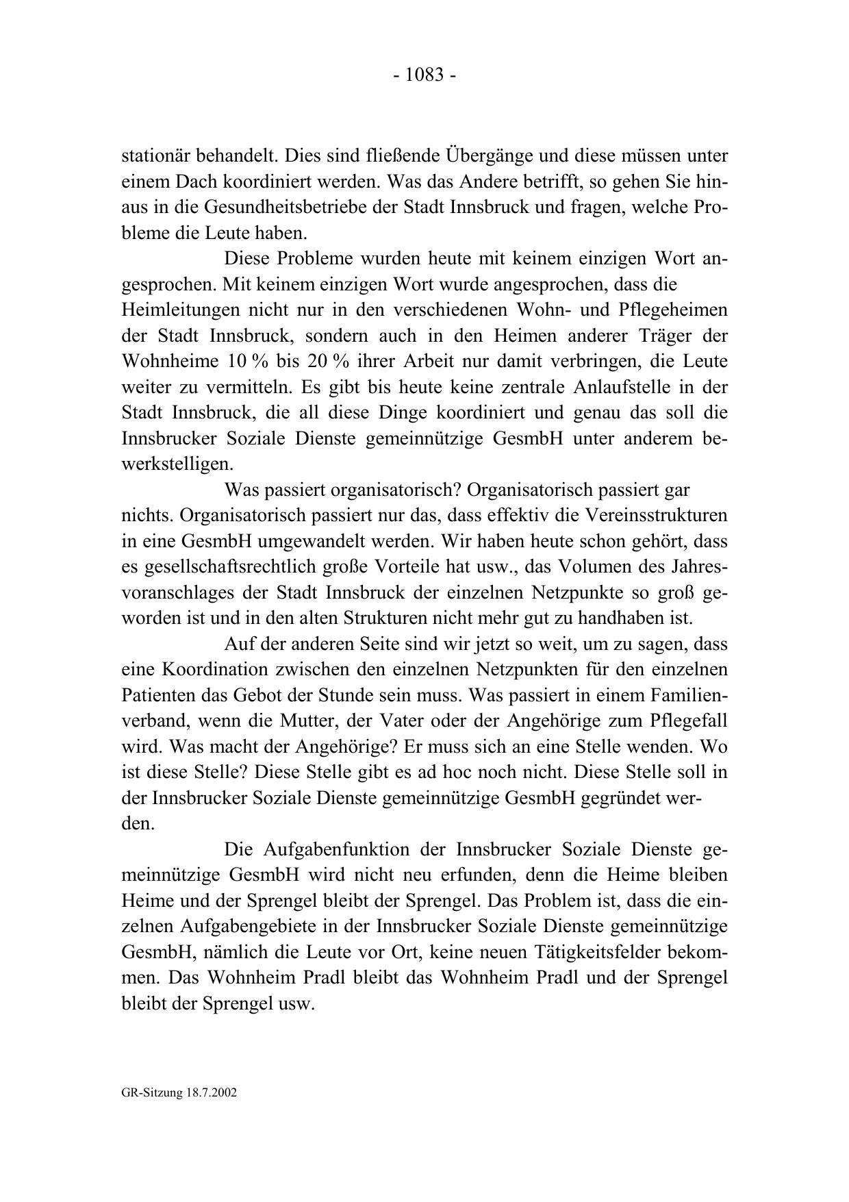 Heime und der Sprengel bleibt der Sprengel. Das Problem ist, dass die einzelnen Aufgabengebiete in der Innsbrucker Soziale Dienste gemeinnützige