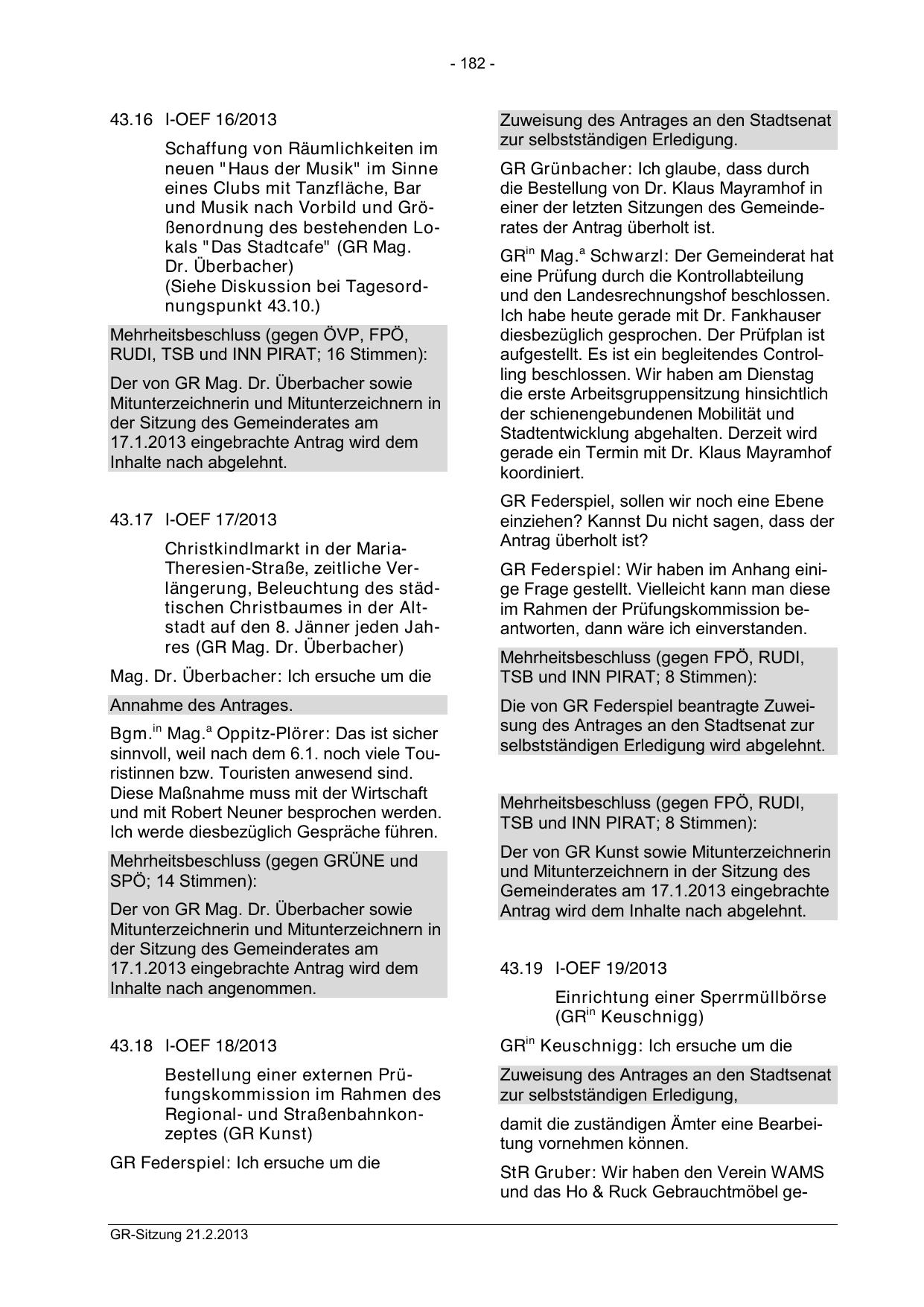Mehrheitsbeschluss (gegen FPÖ, RUDI,