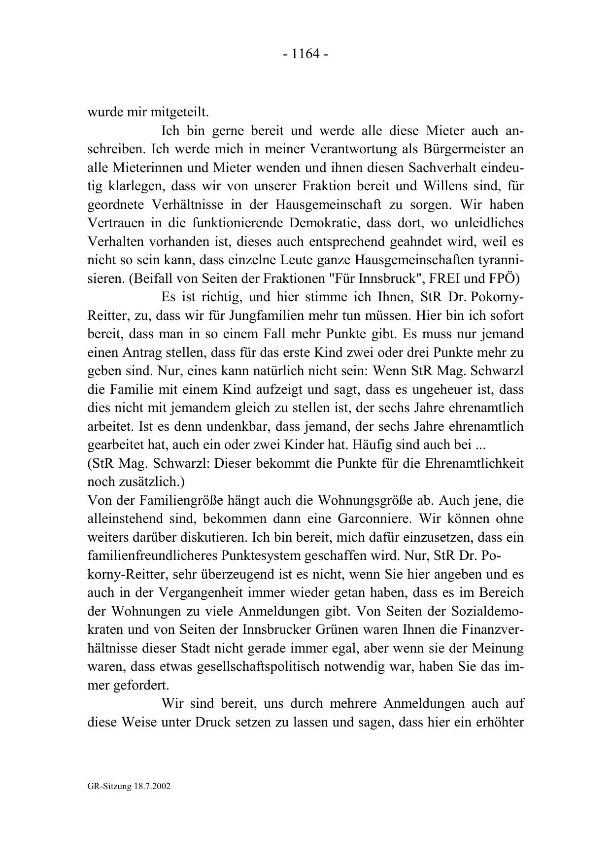der Wohnungen zu viele Anmeldungen gibt. Von Seiten der Sozialdemokraten und von Seiten der Innsbrucker Grünen waren Ihnen die Finanzverhältnisse dieser Stadt nicht gerade immer egal, aber wenn sie der Meinung