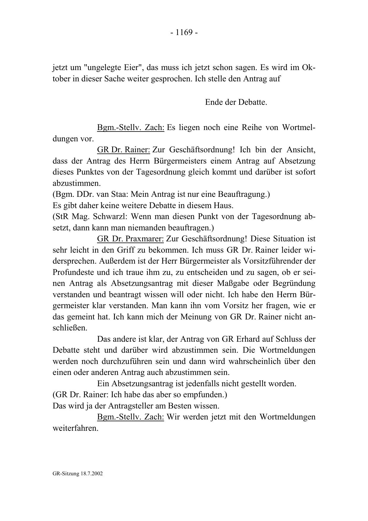 GR Dr. Rainer: Zur Geschäftsordnung! Ich bin der Ansicht,