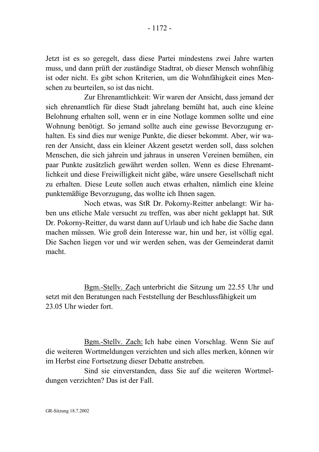 Bgm.-Stellv. Zach unterbricht die Sitzung um 22.55 Uhr und