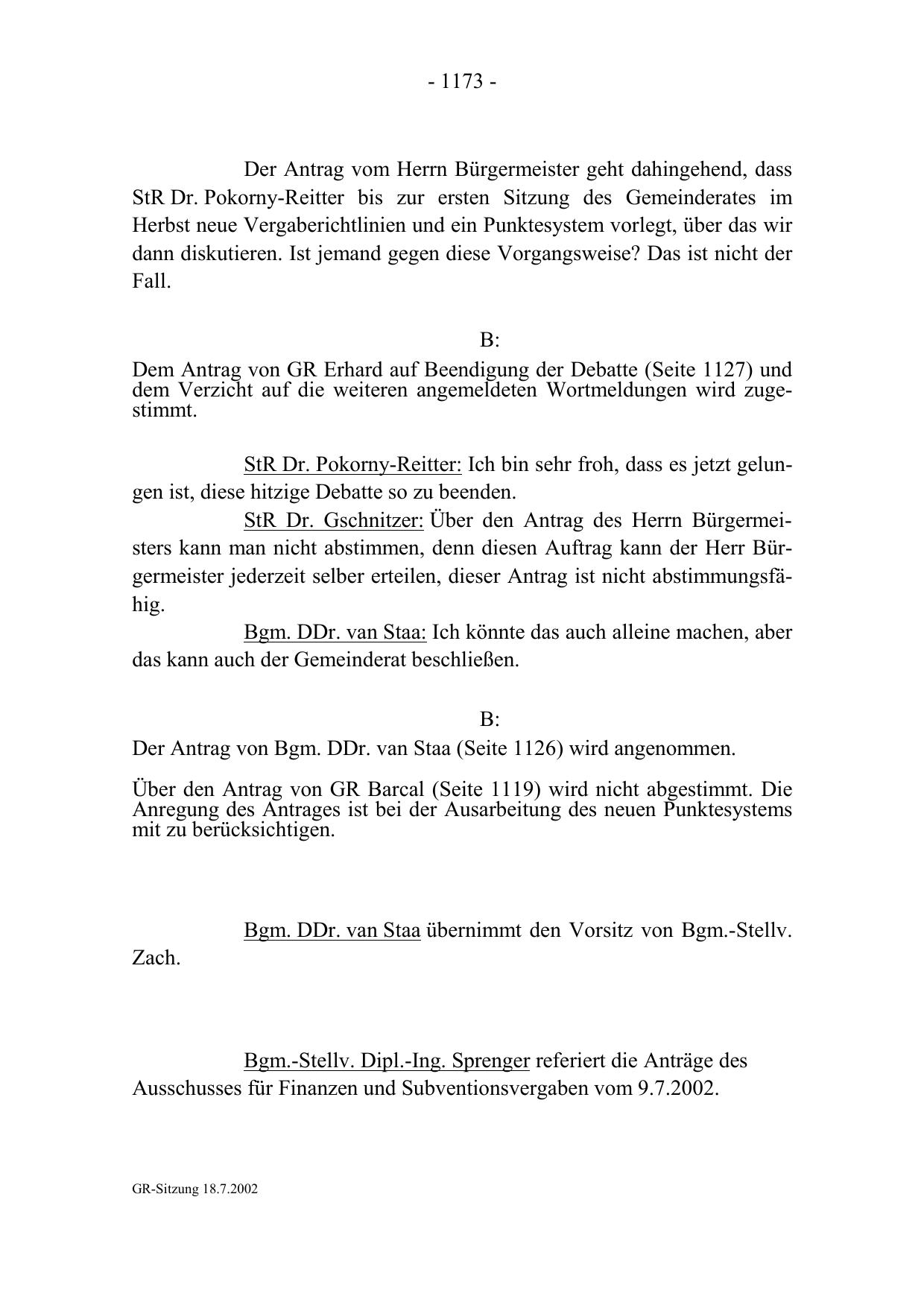 Dem Antrag von GR Erhard auf Beendigung der Debatte (Seite 1127) und