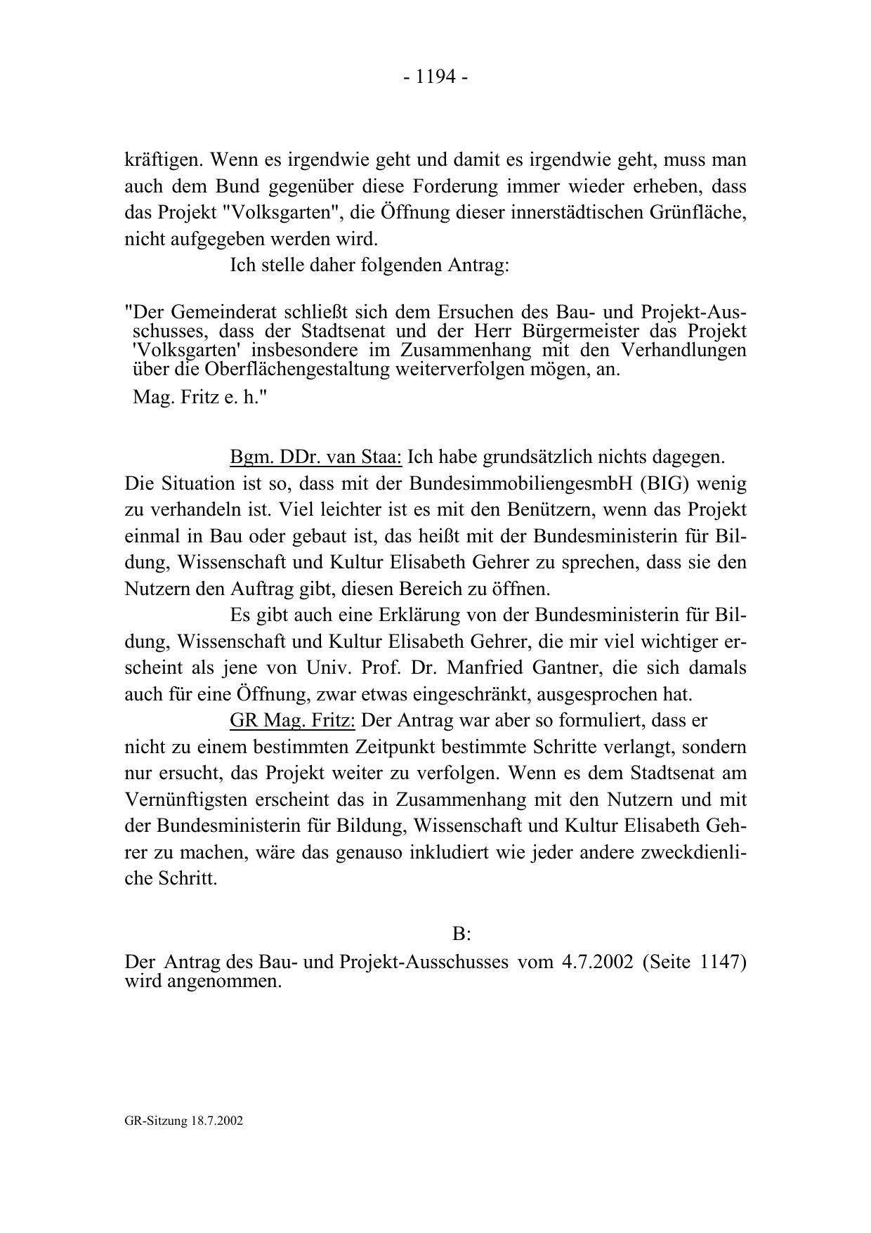 Der Antrag des Bau- und Projekt-Ausschusses vom 4.7.2002 (Seite 1147)