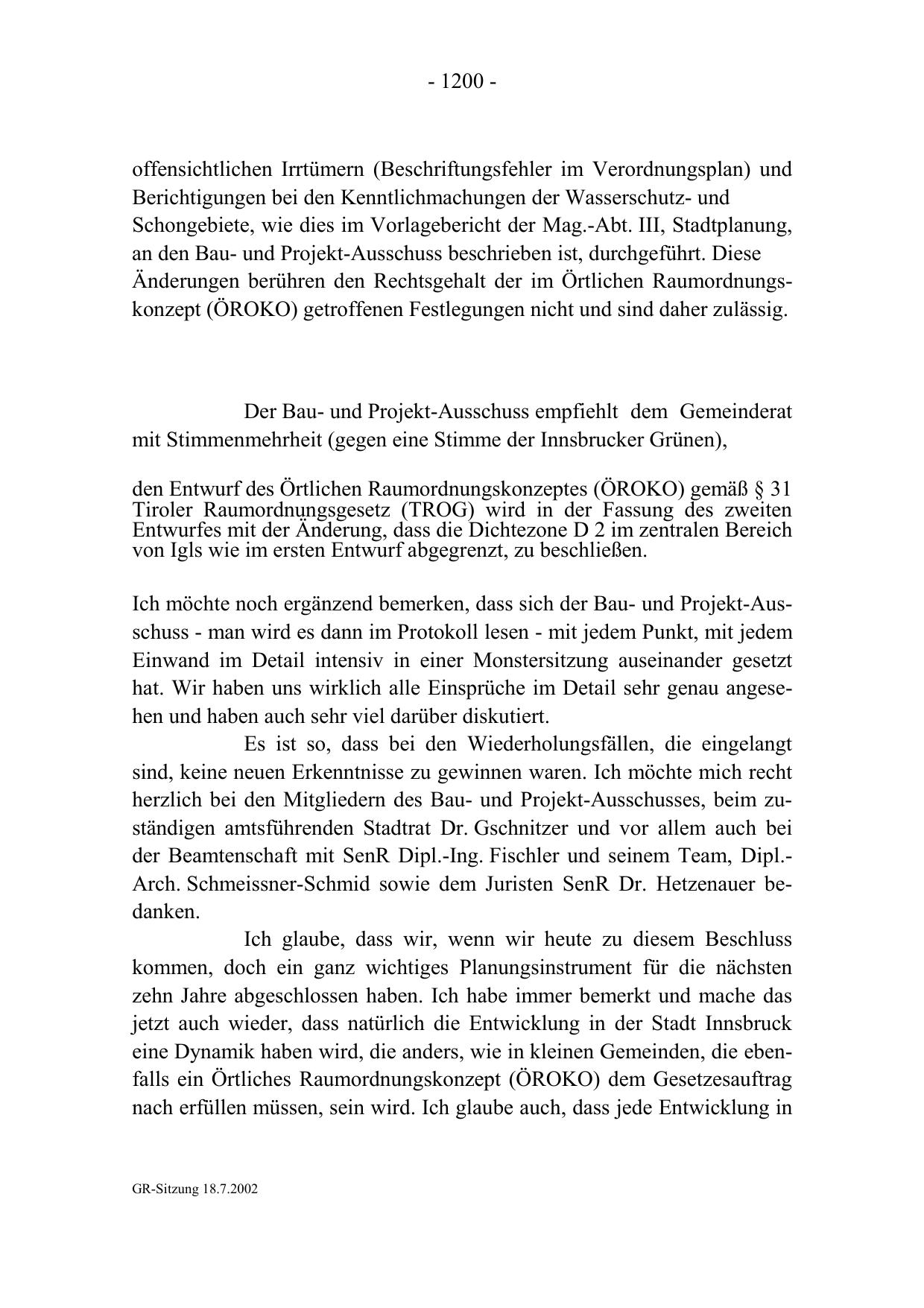 mit Stimmenmehrheit (gegen eine Stimme der Innsbrucker Grünen),