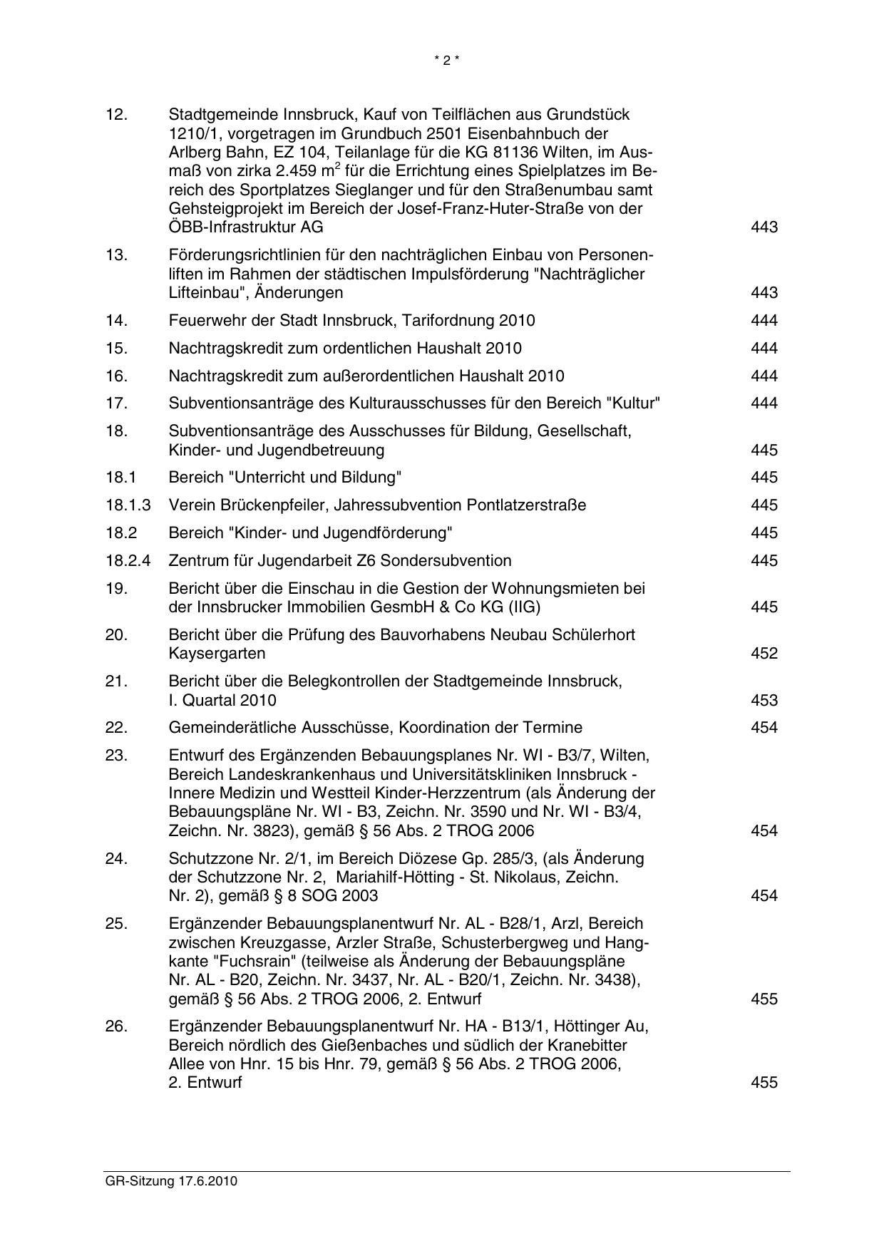 Bericht über die Belegkontrollen der Stadtgemeinde Innsbruck,