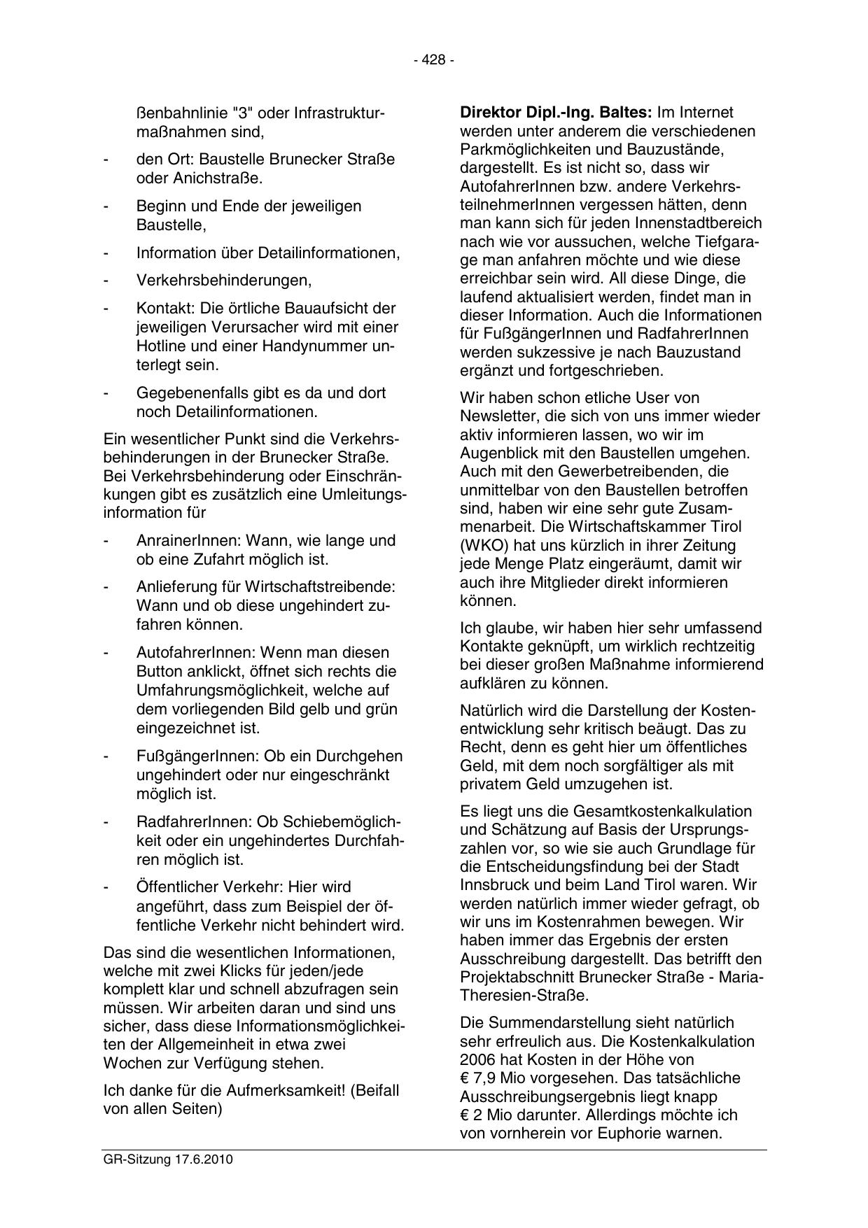 Ein wesentlicher Punkt sind die Verkehrsbehinderungen in der Brunecker Straße.