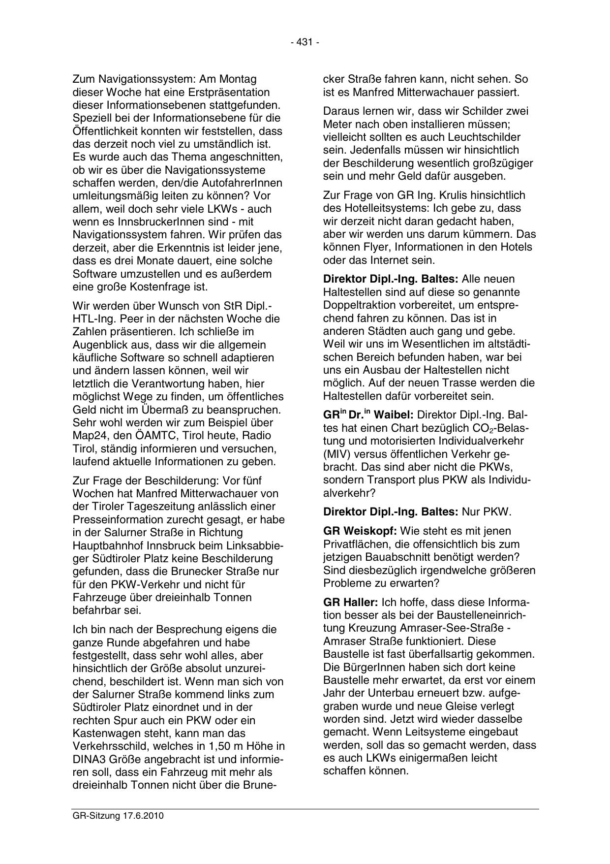 GR Haller: Ich hoffe, dass diese Information besser als bei der Baustelleneinrichtung Kreuzung Amraser-See-Straße Amraser Straße funktioniert. Diese