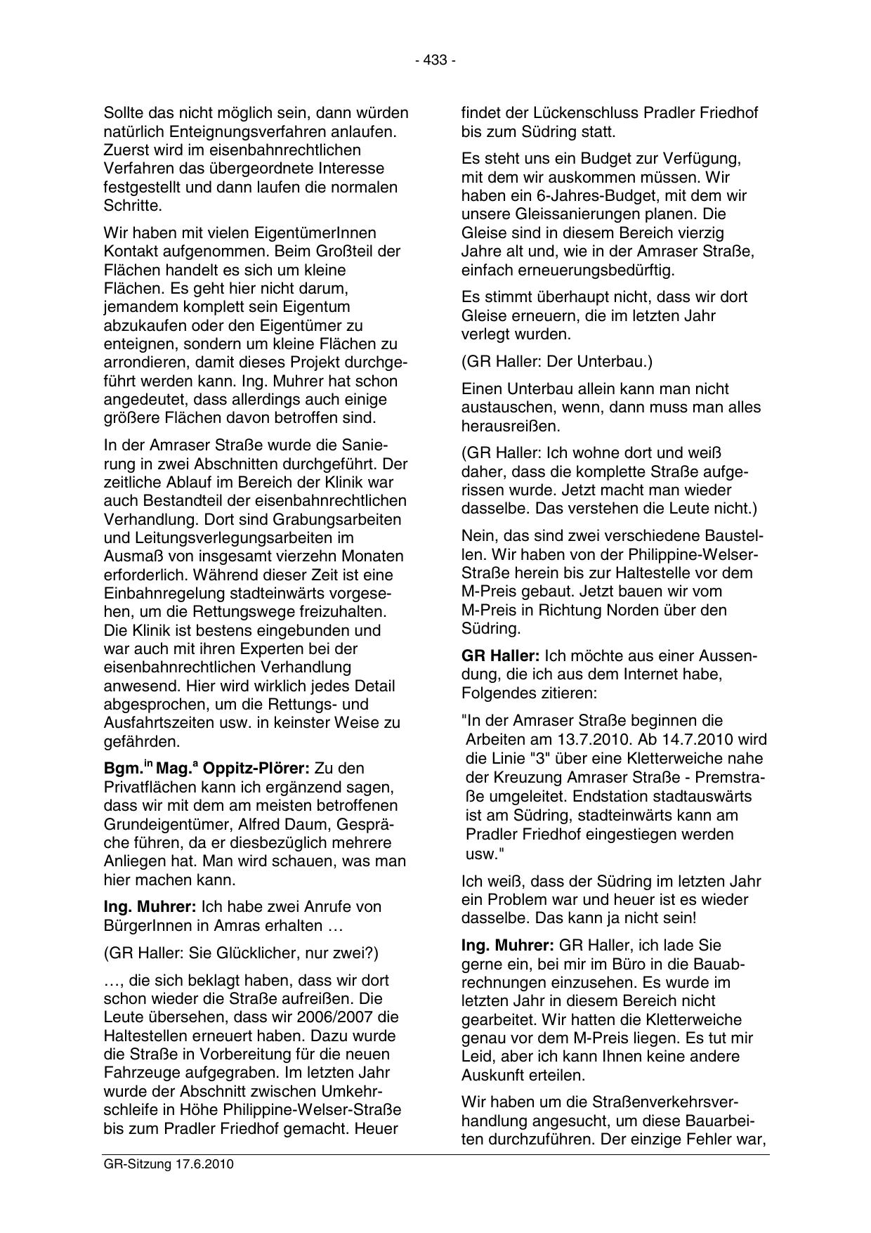 GR Haller: Ich möchte aus einer Aussendung, die ich aus dem Internet habe,