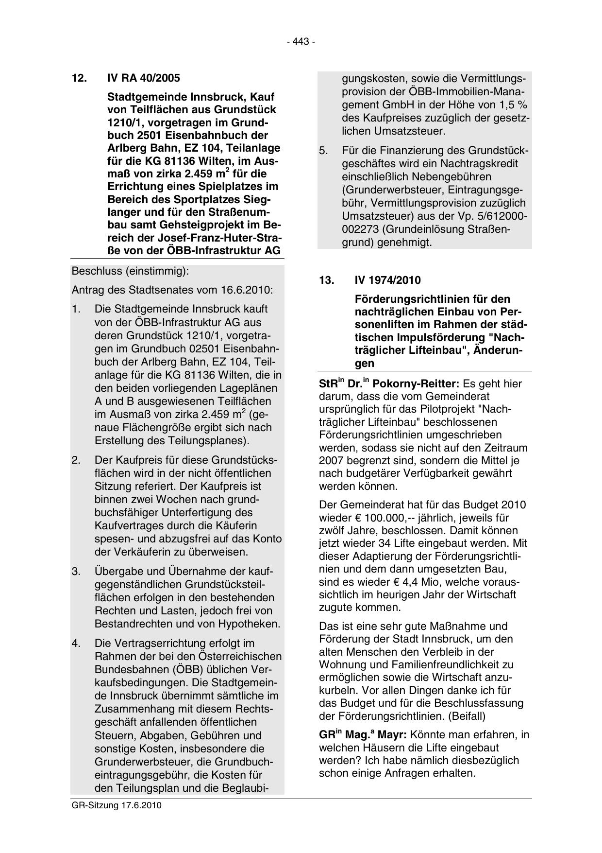 Bundesbahnen (ÖBB) üblichen Verkaufsbedingungen. Die Stadtgemeinde Innsbruck übernimmt sämtliche im