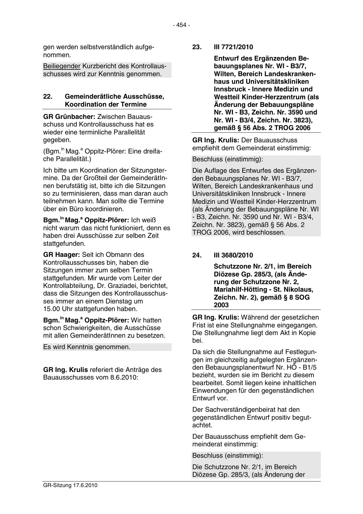 (Bgm. Mag. Oppitz-Plörer: Eine dreifache Parallelität.)