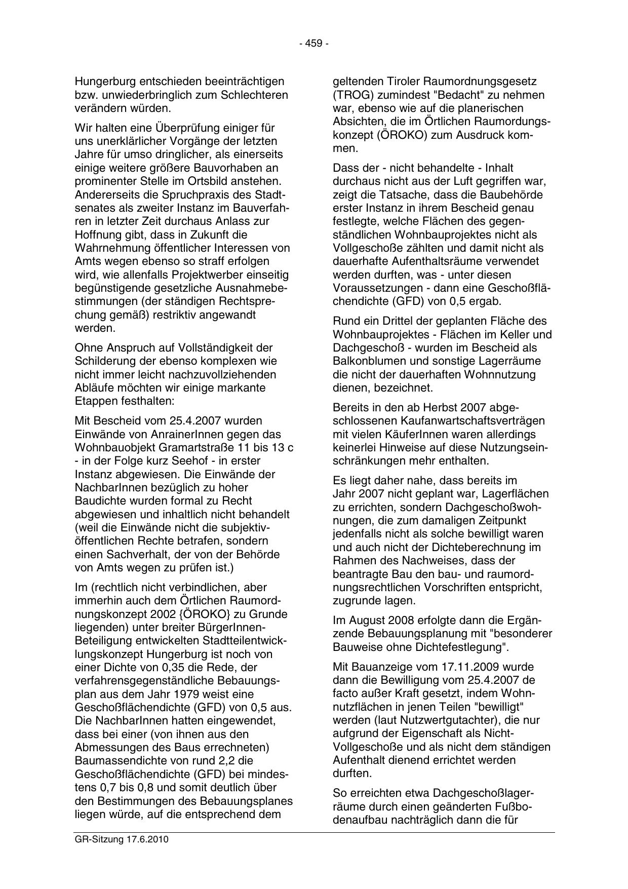 Andererseits die Spruchpraxis des Stadtsenates als zweiter Instanz im Bauverfahren in letzter Zeit durchaus Anlass zur