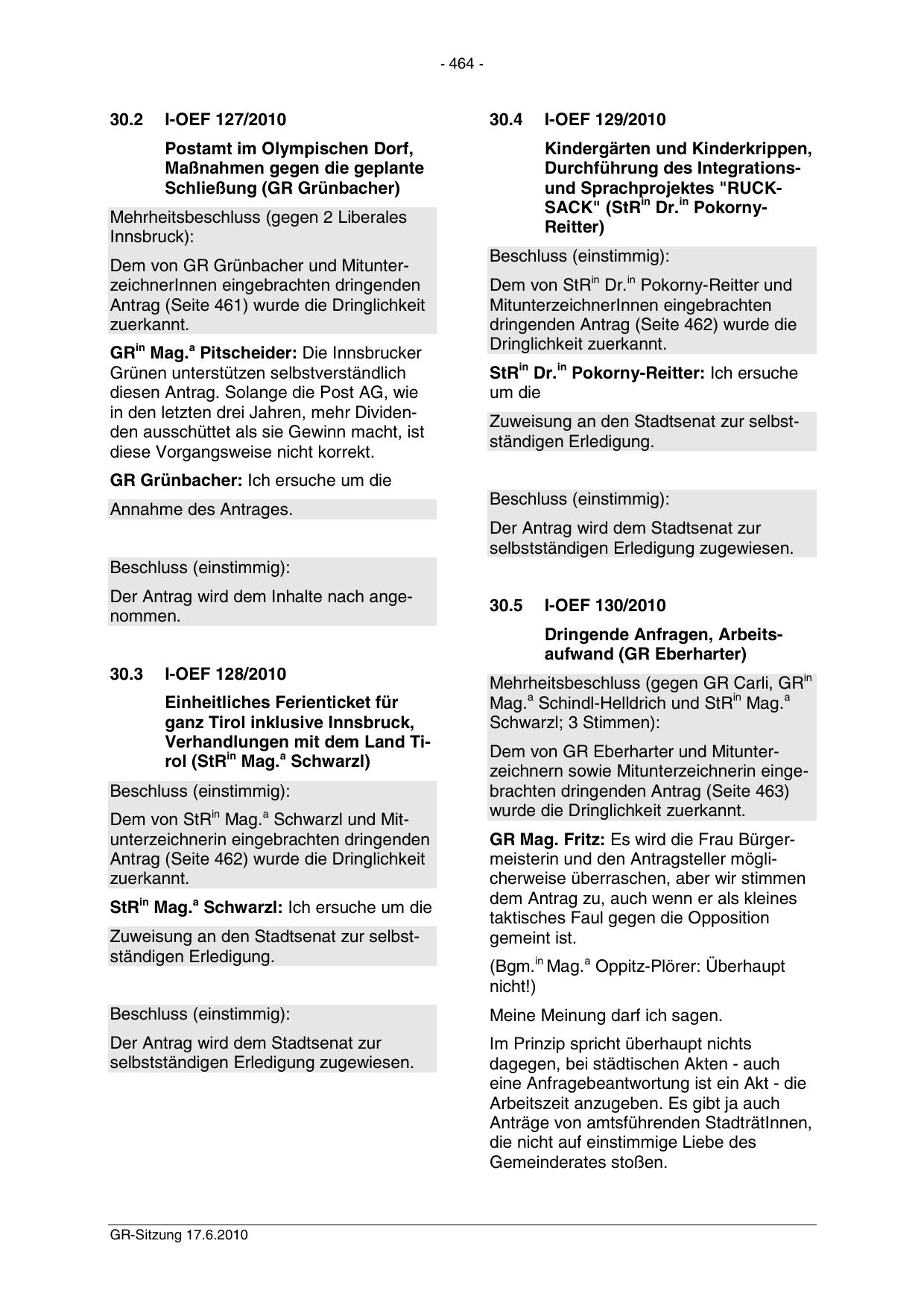 Dem von GR Eberharter und Mitunterzeichnern sowie Mitunterzeichnerin eingebrachten dringenden Antrag (Seite 463)