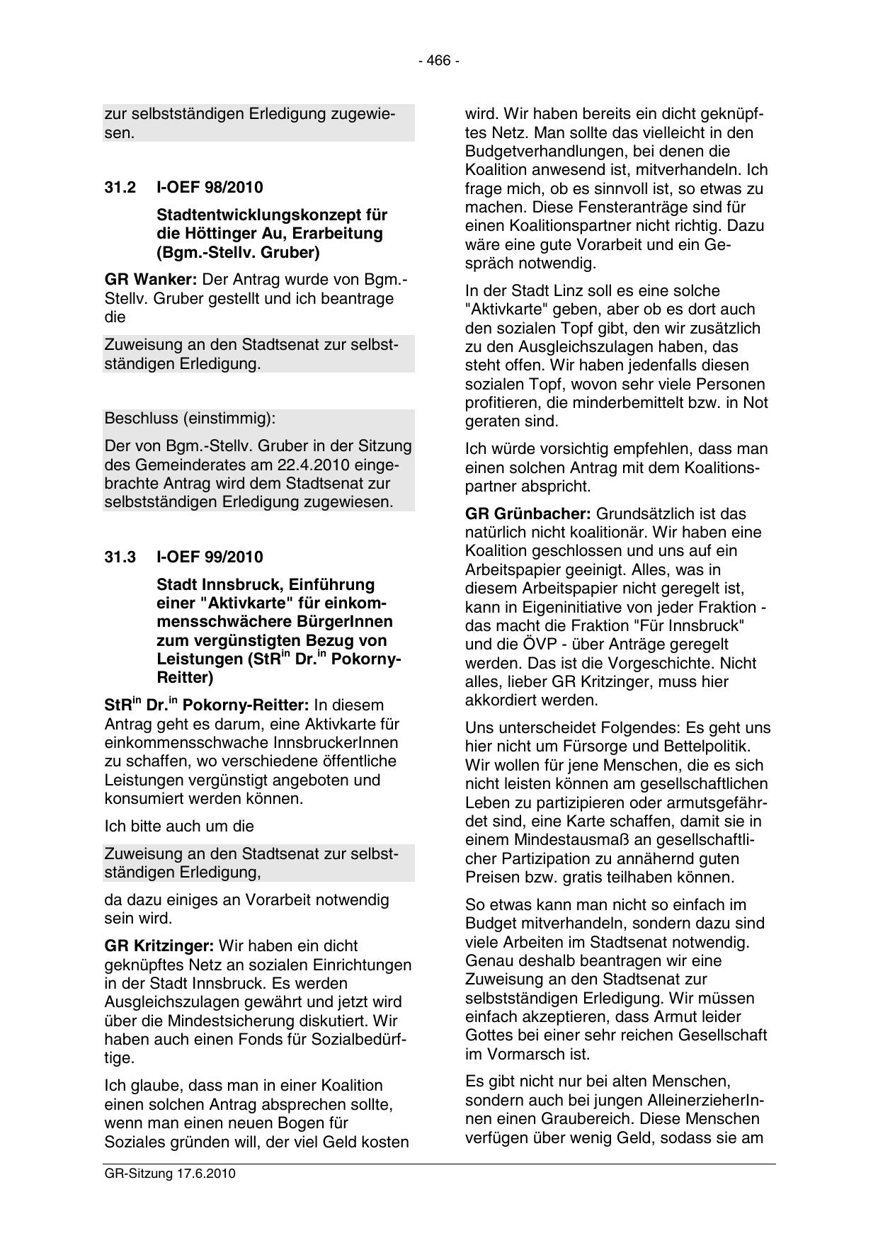 kann in Eigeninitiative von jeder Fraktion das macht die Fraktion "Für Innsbruck"