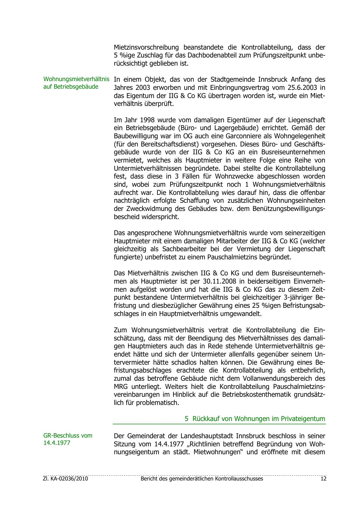 Wohnungsmietverhältnis In einem Objekt, das von der Stadtgemeinde Innsbruck Anfang des
